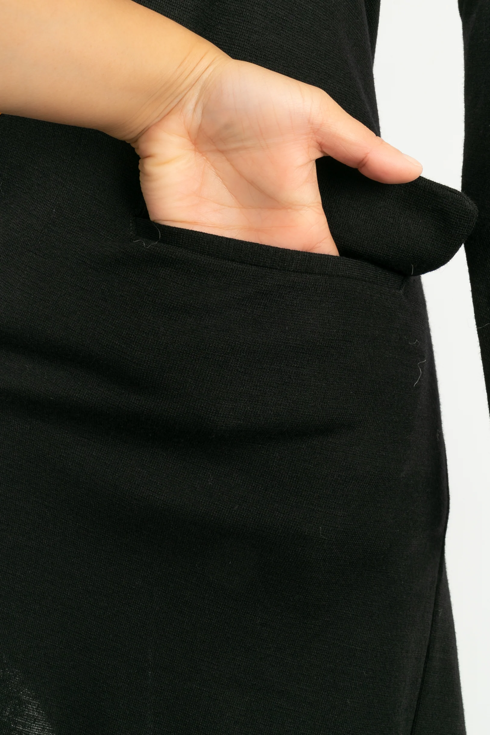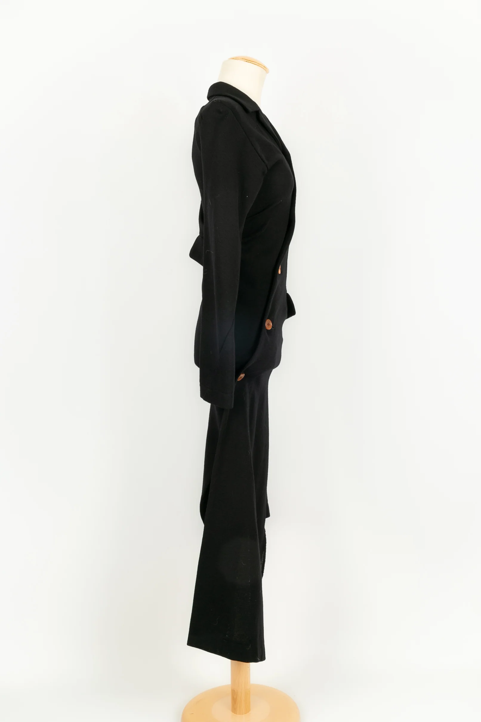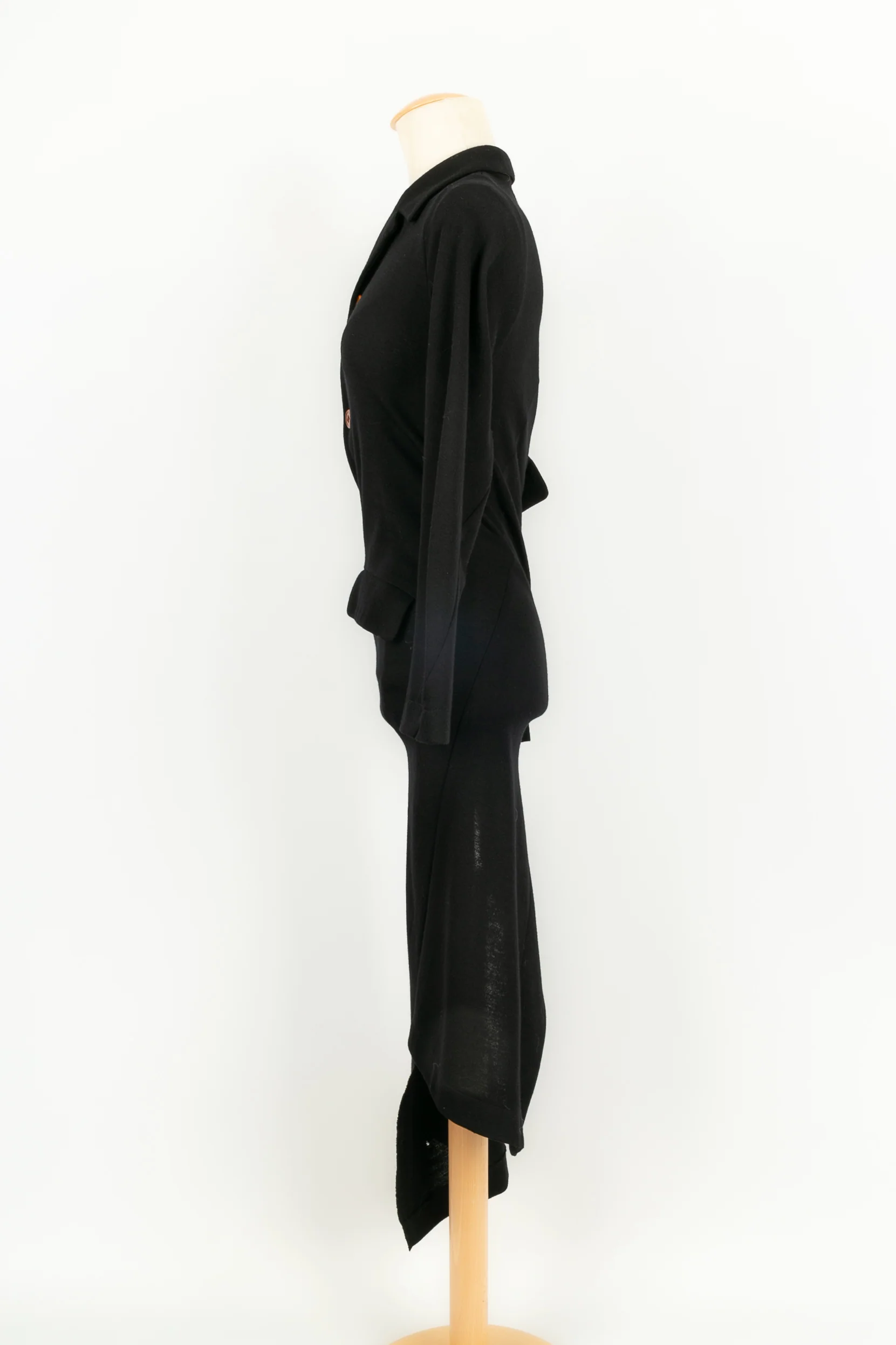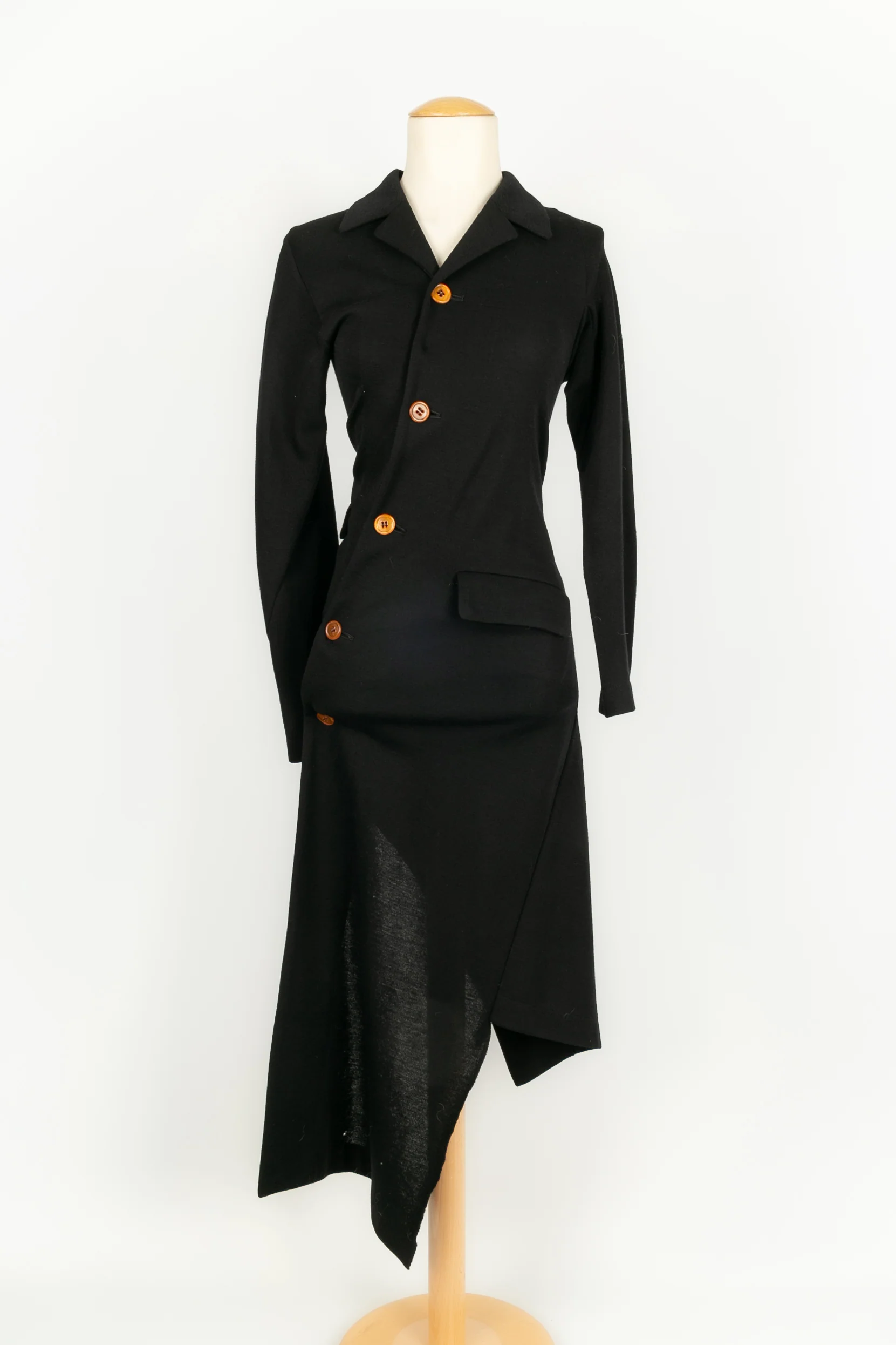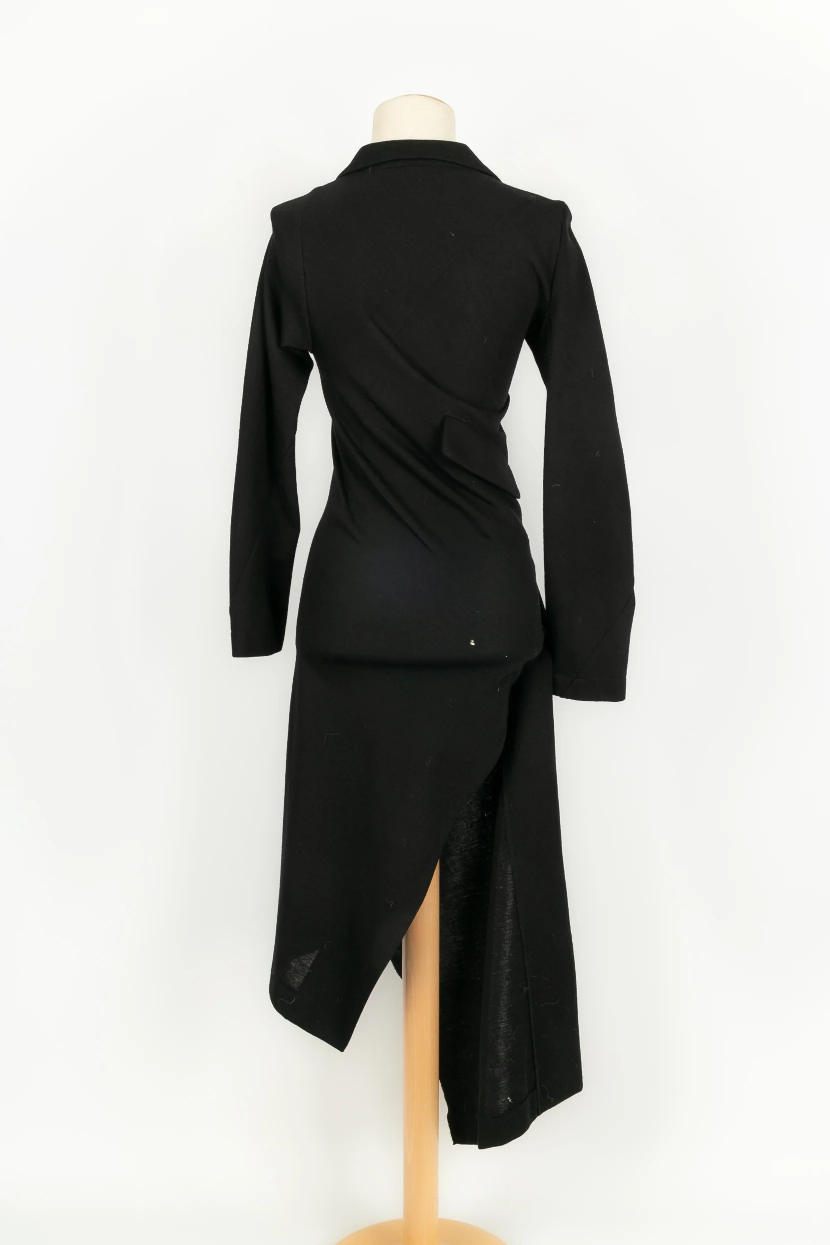 COMME DES GARÇONS -Robe asymétrique en laine non doublée noire. Marquée taille S, elle convient à un 36FR.