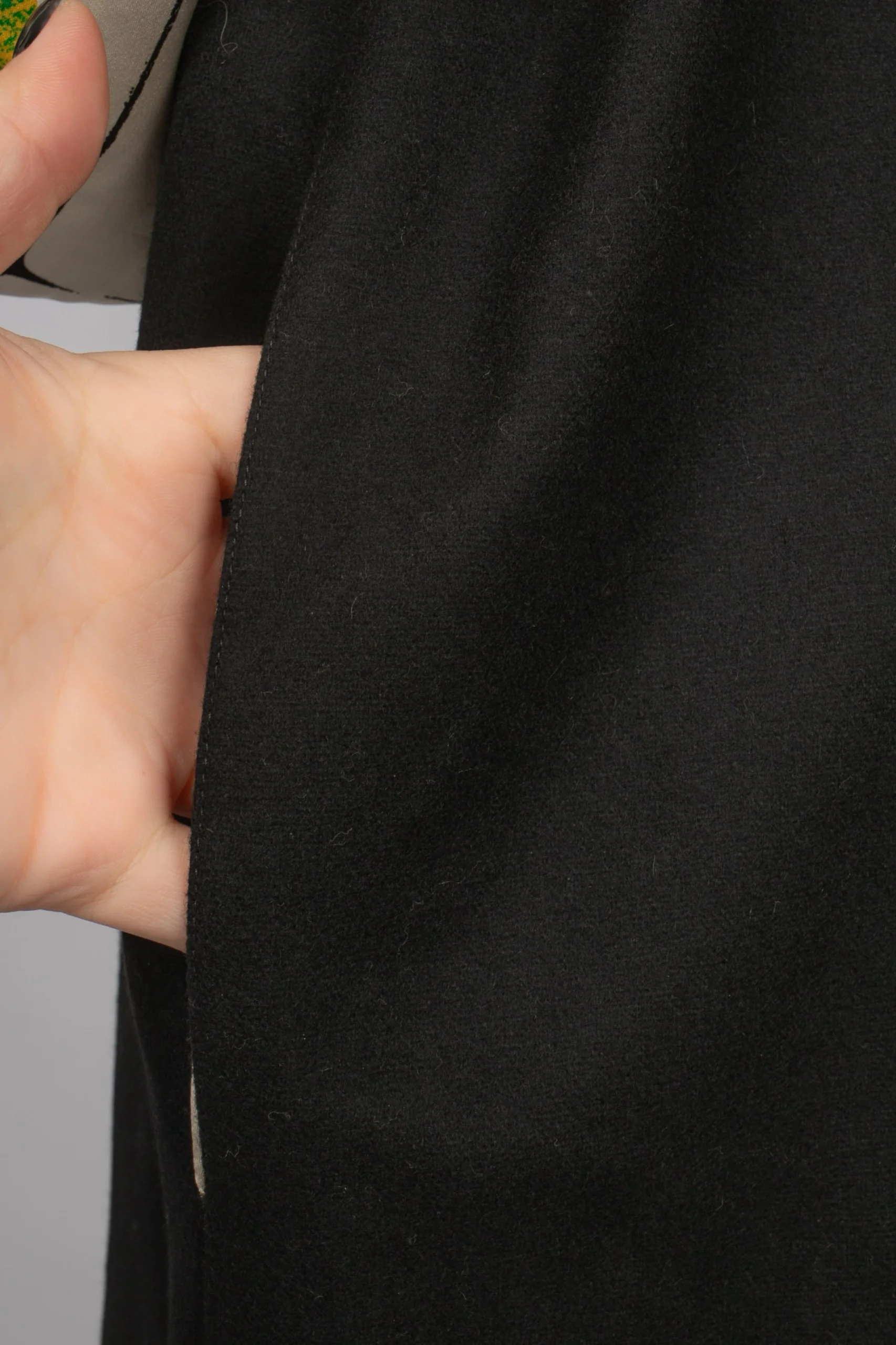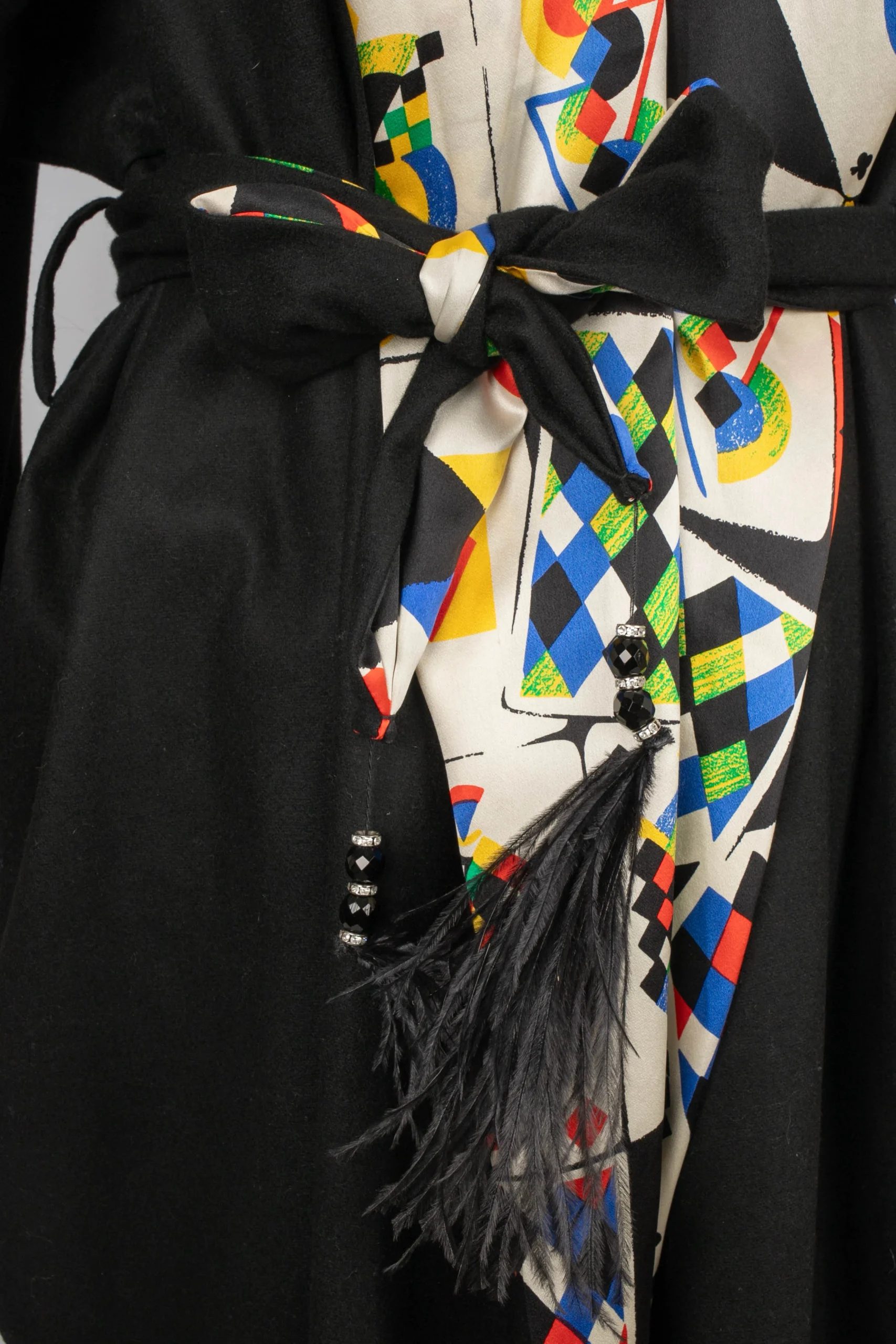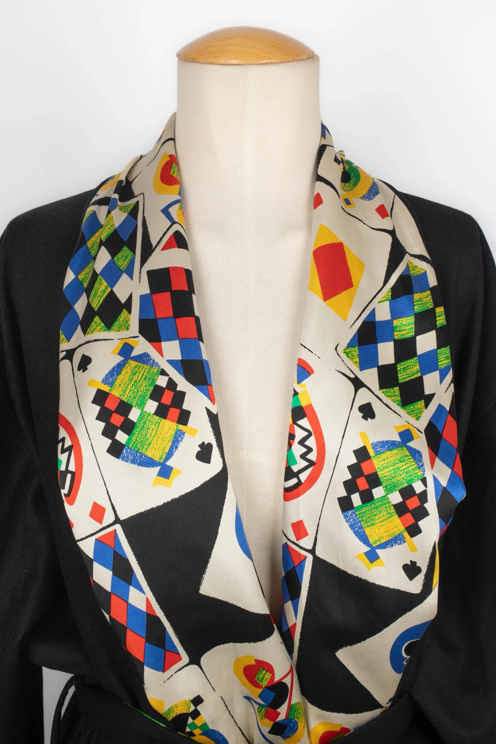 VERSACE -(Made in Italy) Robe de chambre en laine mélangée noire et doublure en soie à motif « Jeu de Cartes ». Taille indiquée 42IT. Condition : Très bon état Dimensions : Largeur d’épaules : 55 cm – Longueur des manches : 55 cm – Longueur : 140 cm