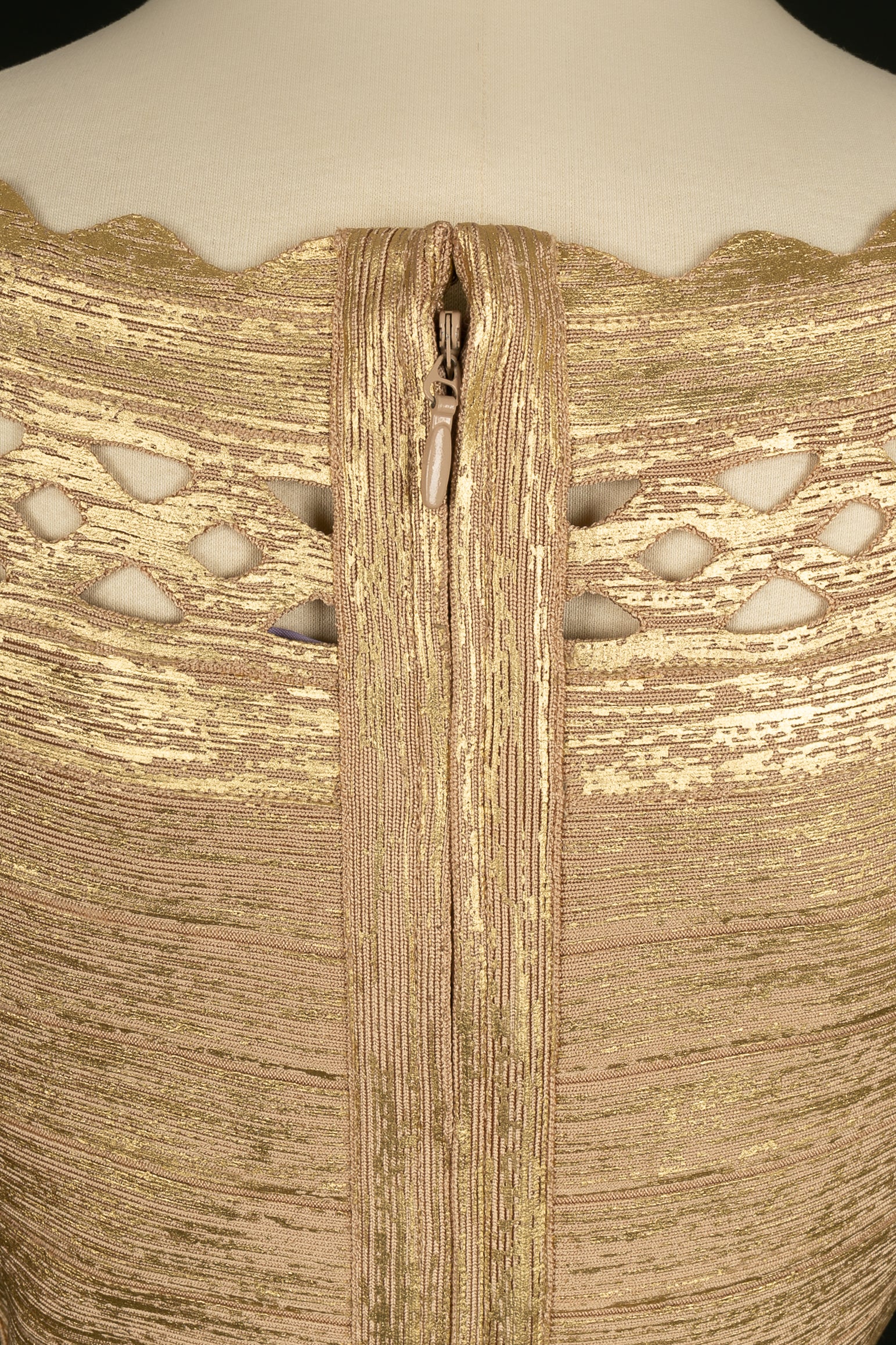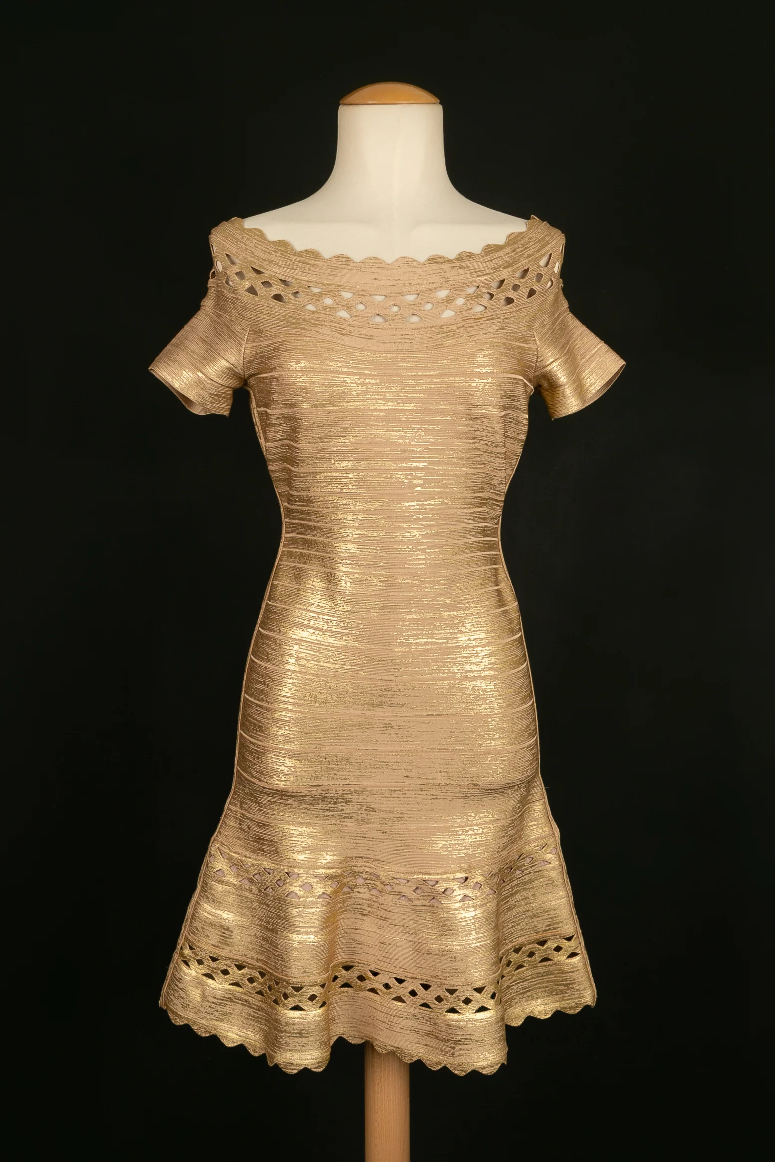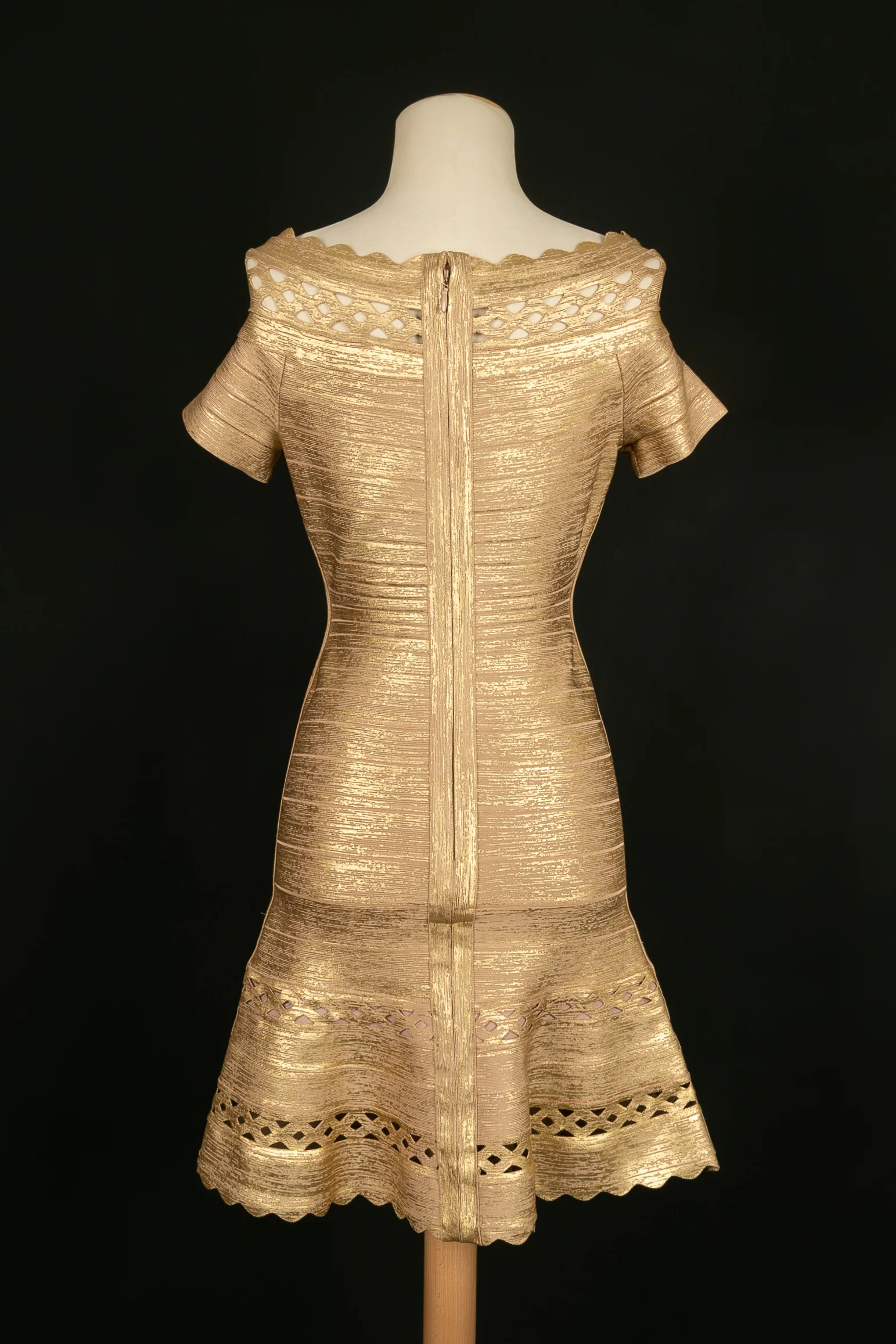 HERVÉ LÉGER -Robe courte en maille dorée – Taille S.