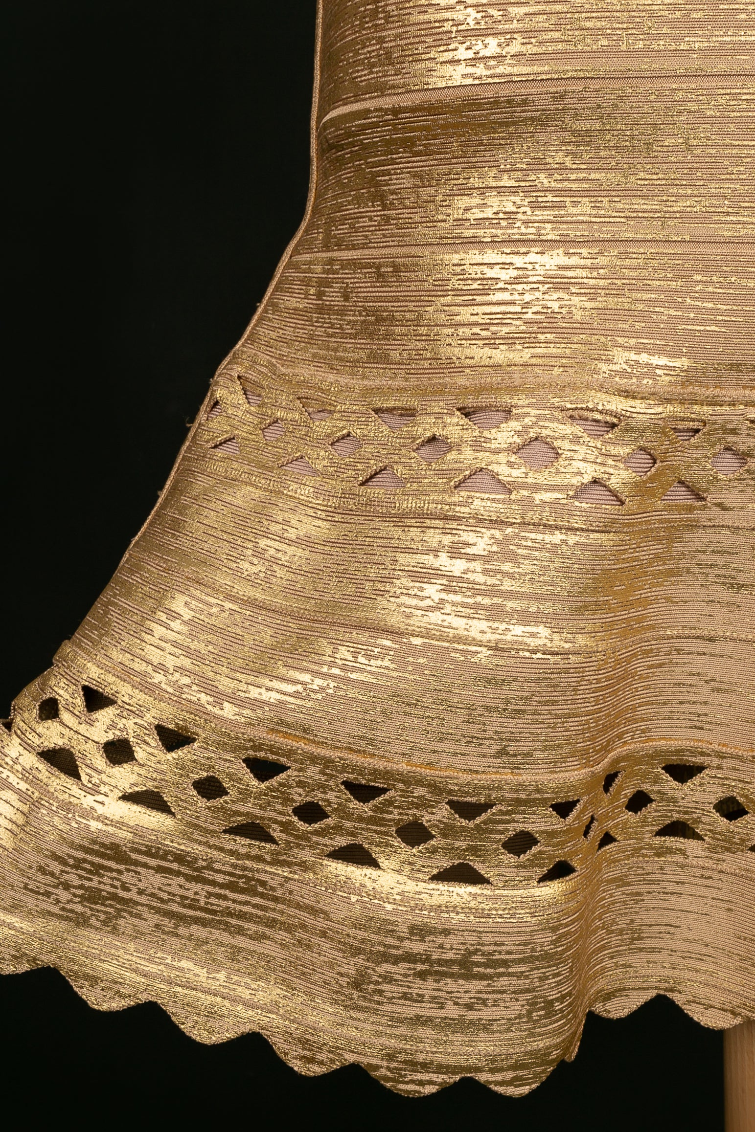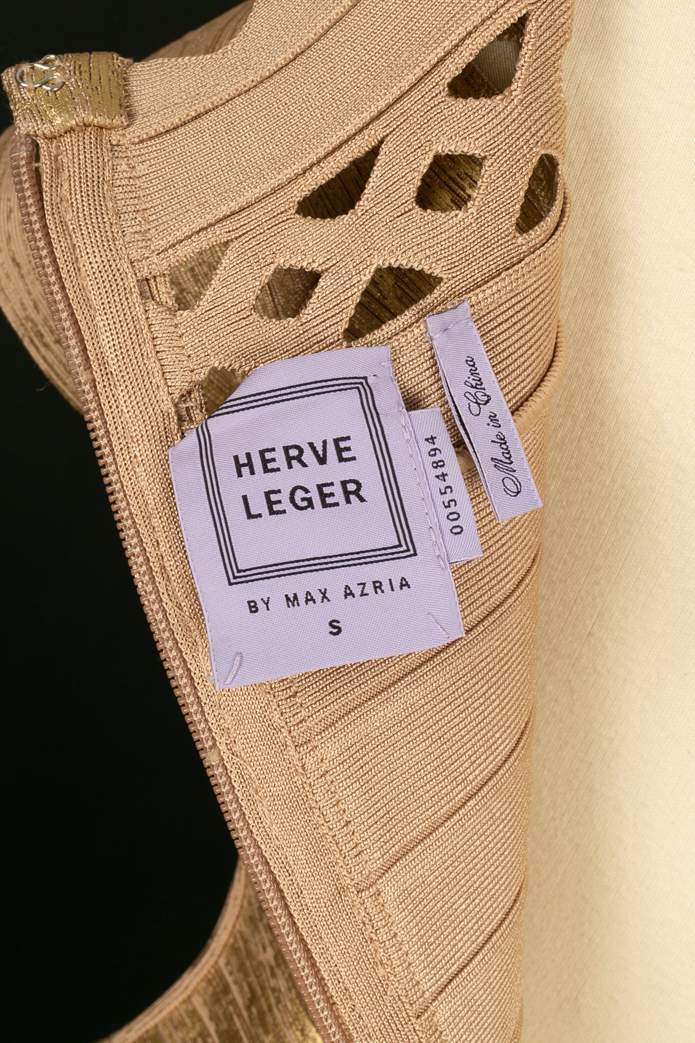 HERVÉ LÉGER -Robe courte en maille dorée – Taille S. Condition : Très bon état Dimensions : Poitrine : 38 cm – Taille : 29 cm – Longueur : 90 cm