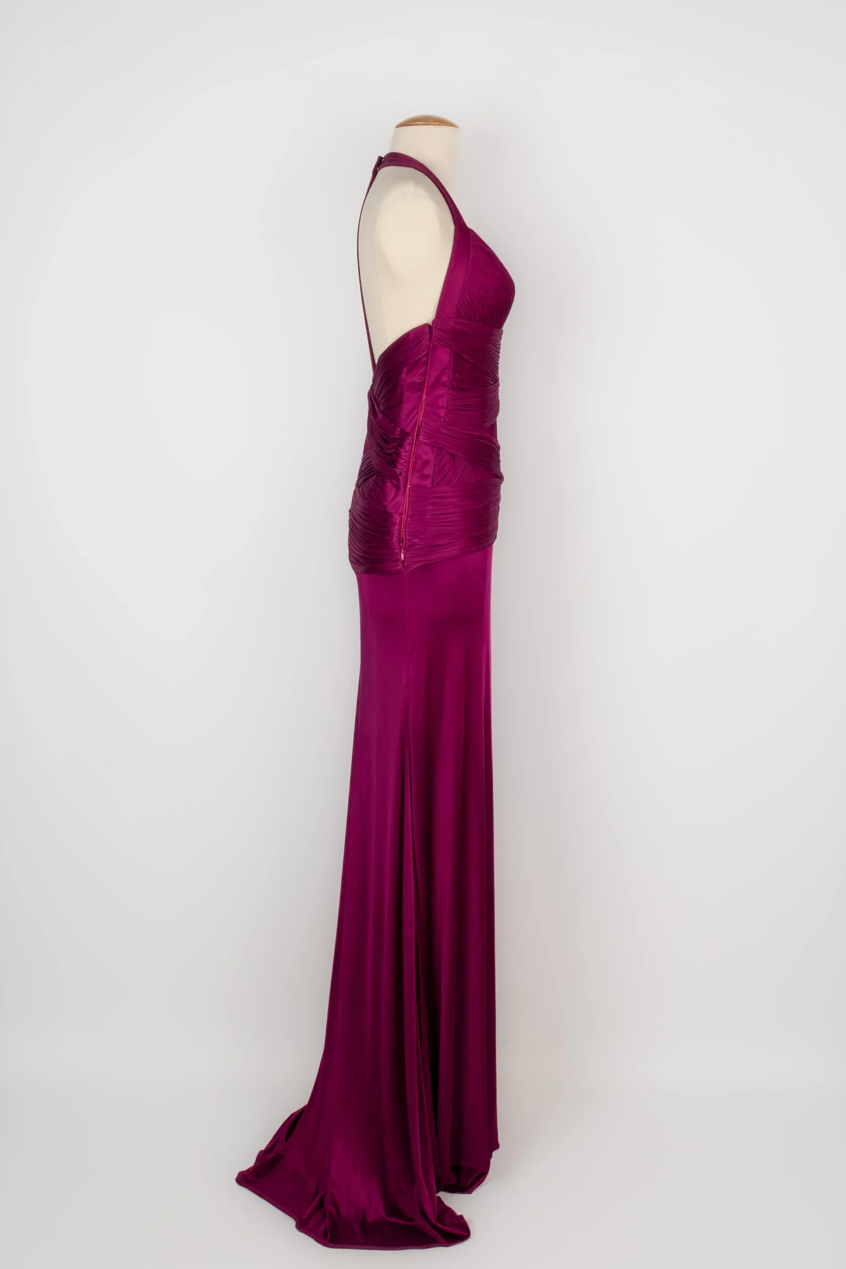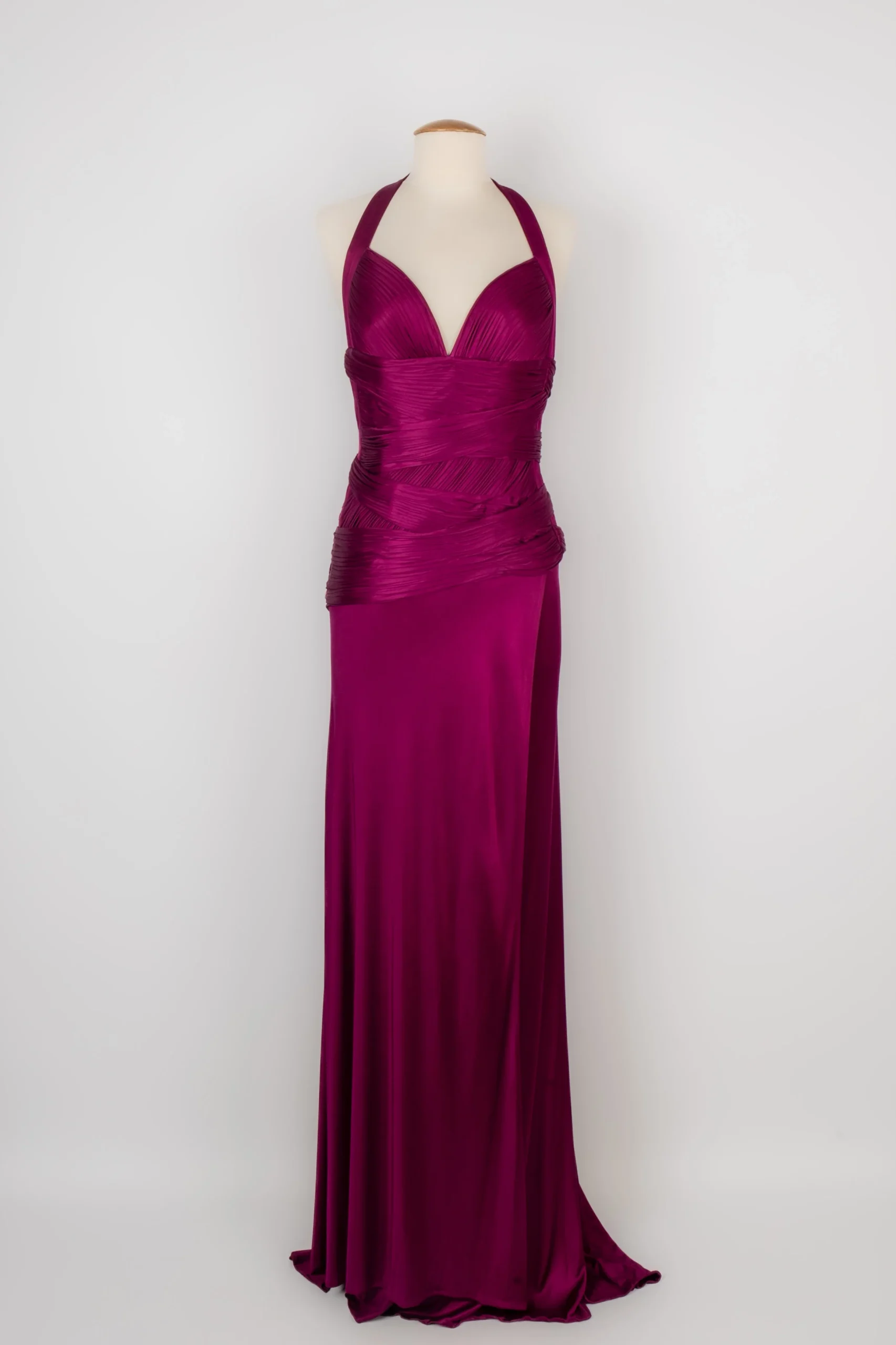 VERSACE -(Made in Italy) Robe en jeyrsey plissé violet. Marqué taille 40IT. Condition : Très bon état Dimensions : Poitrine : 37 cm – Taille : 32 cm – Longueur : environ 160 cm