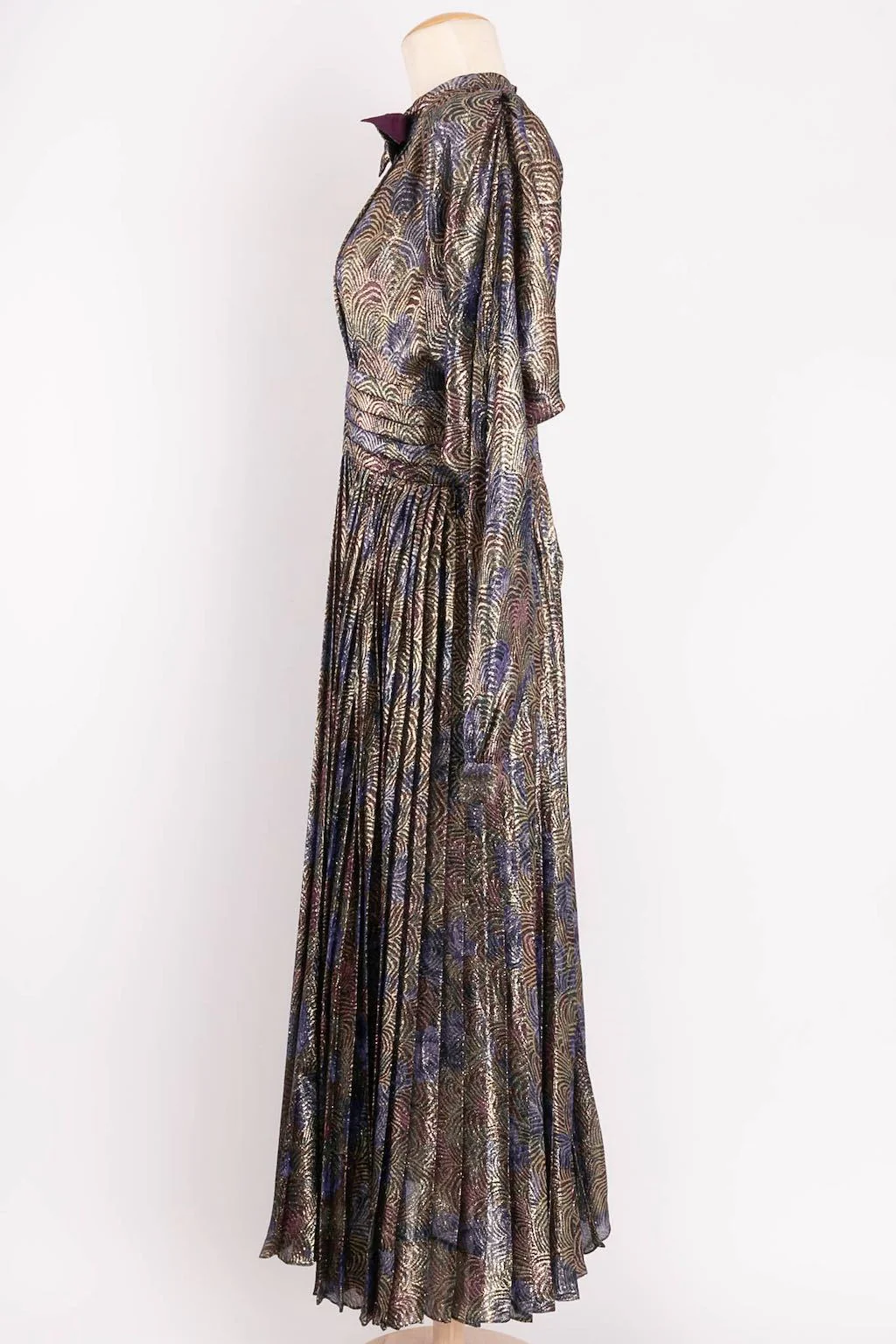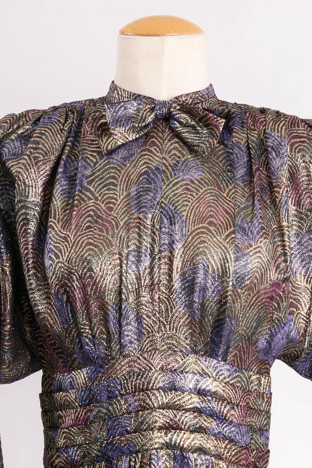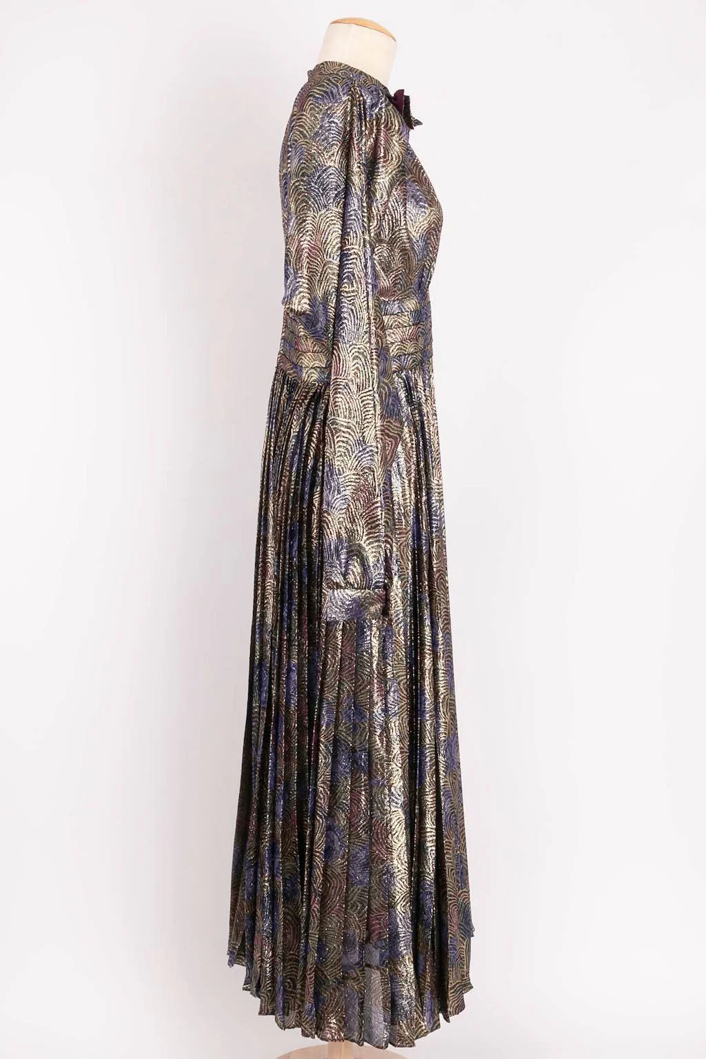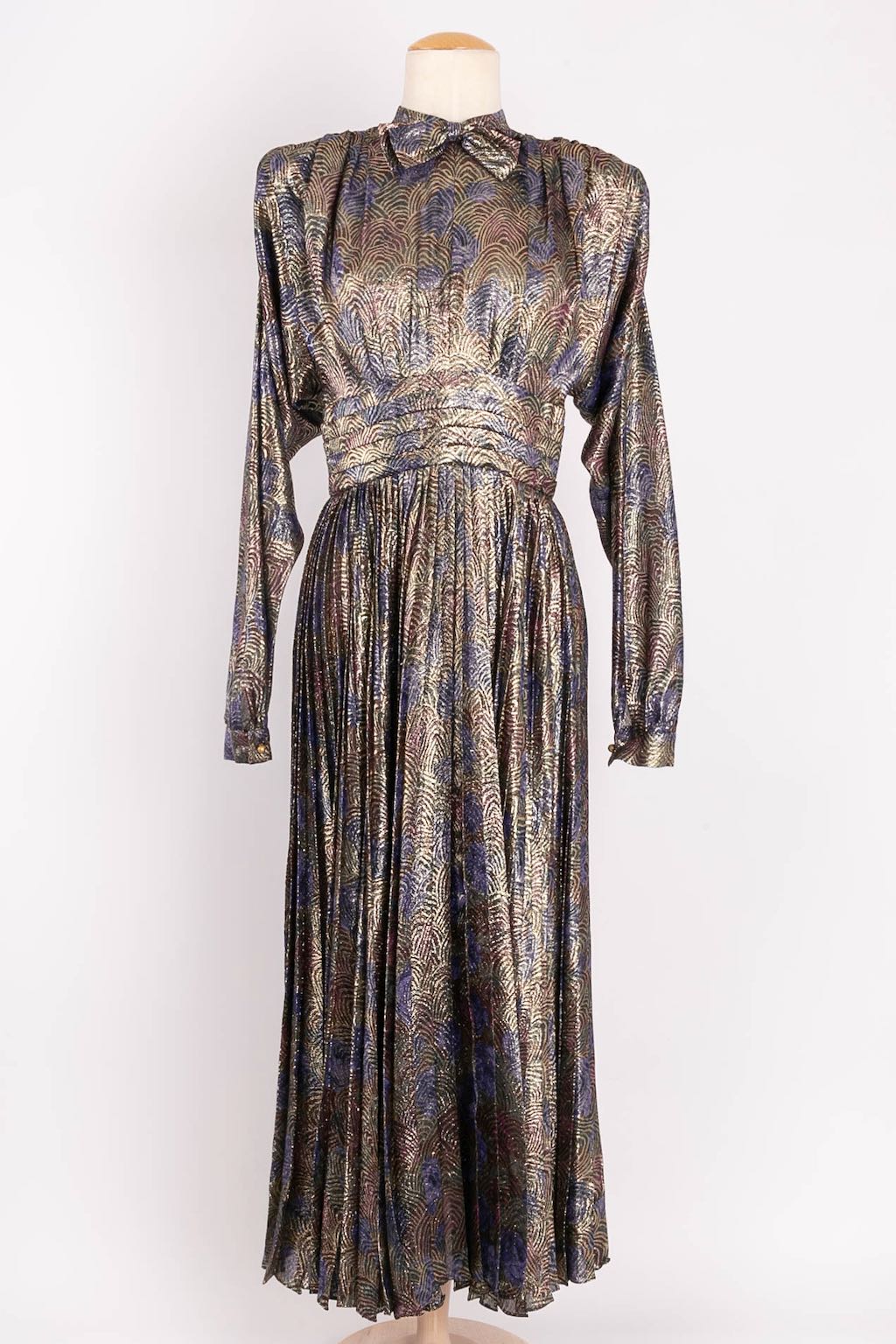 NINA RICCI -(Made in France) Robe en lamé. Etiquettes de taille et de composition absentes, elle convient à une taille 36FR.