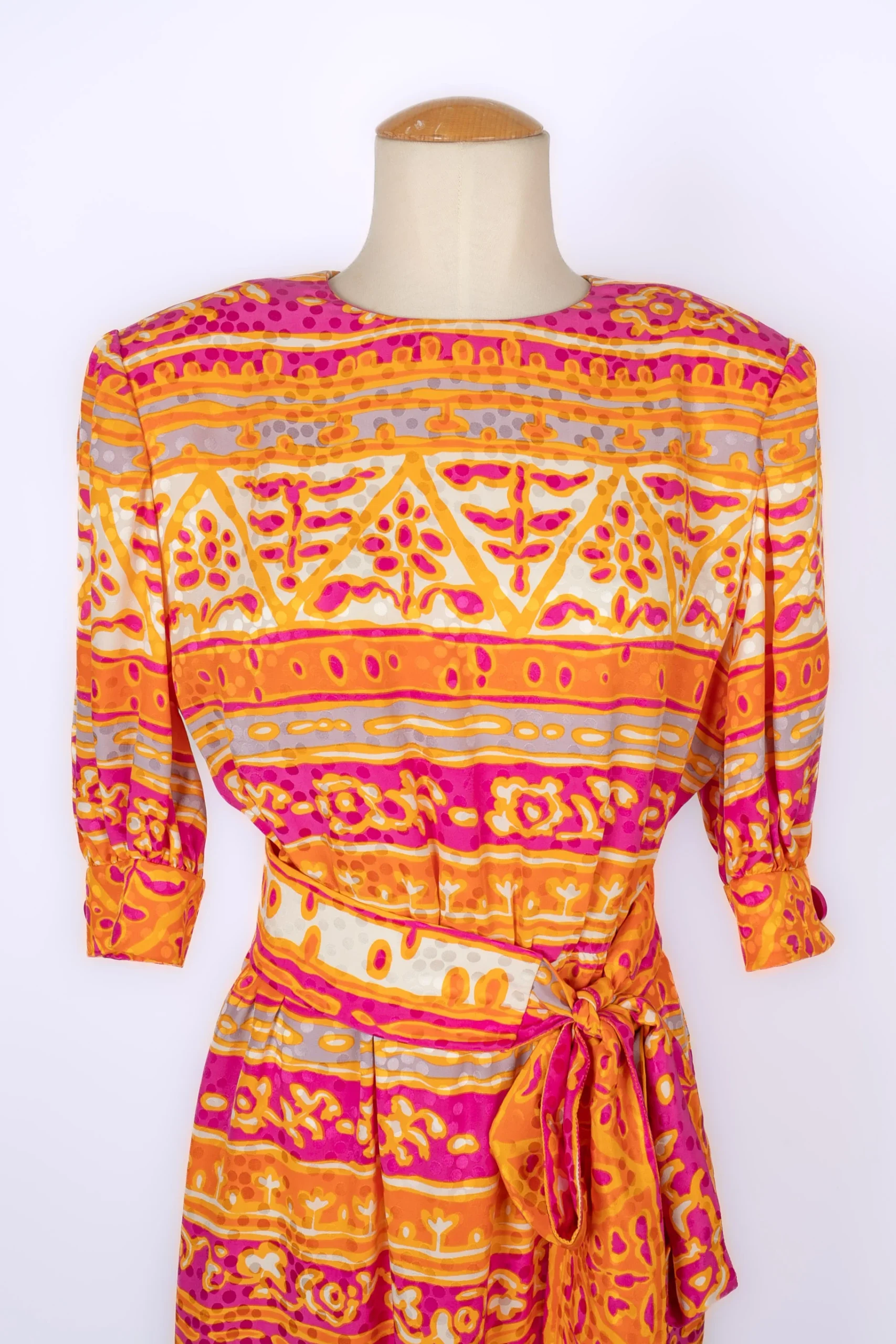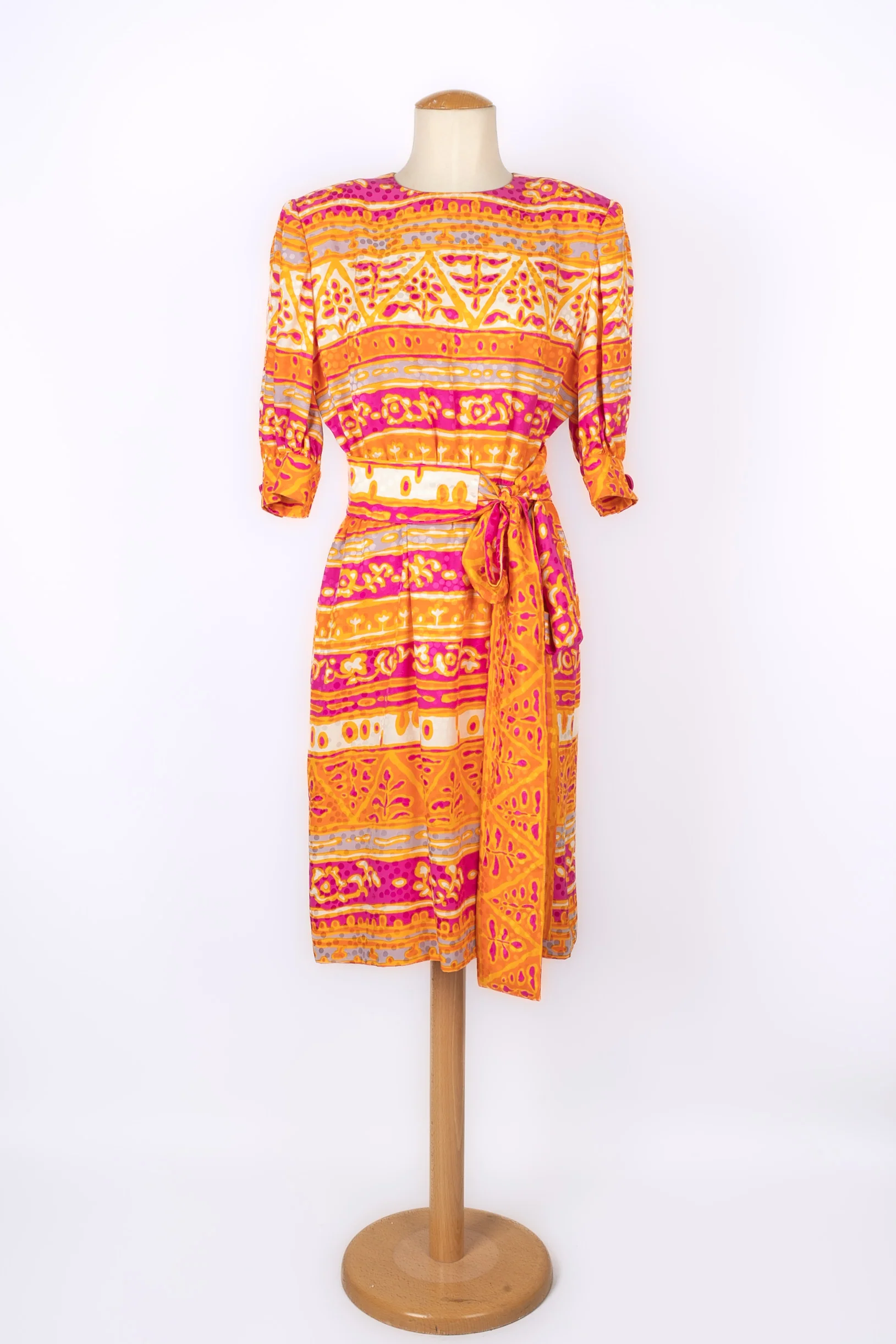 GIVENCHY -(Made in France) Robe en soie colorée. Taille 40FR.