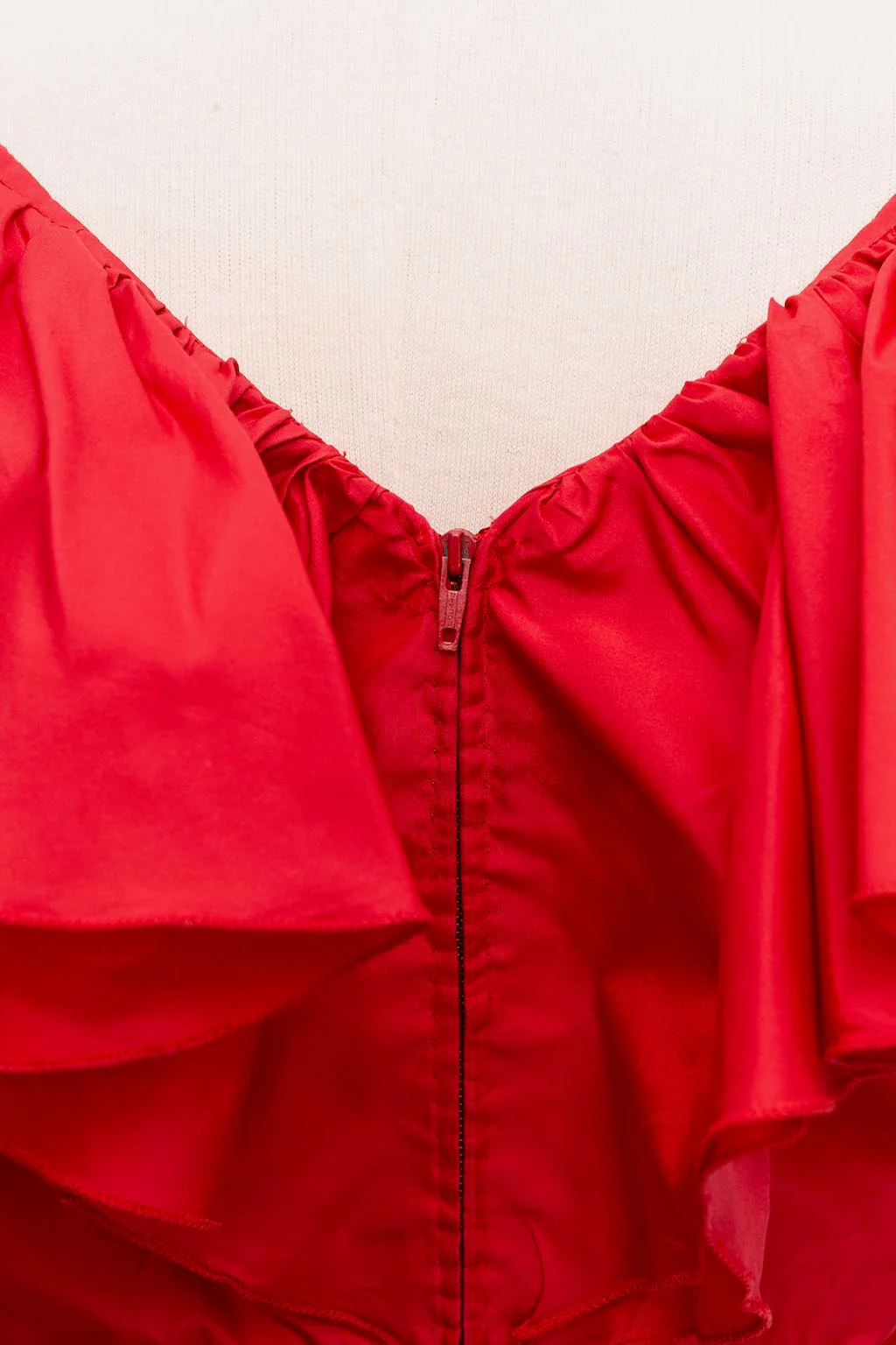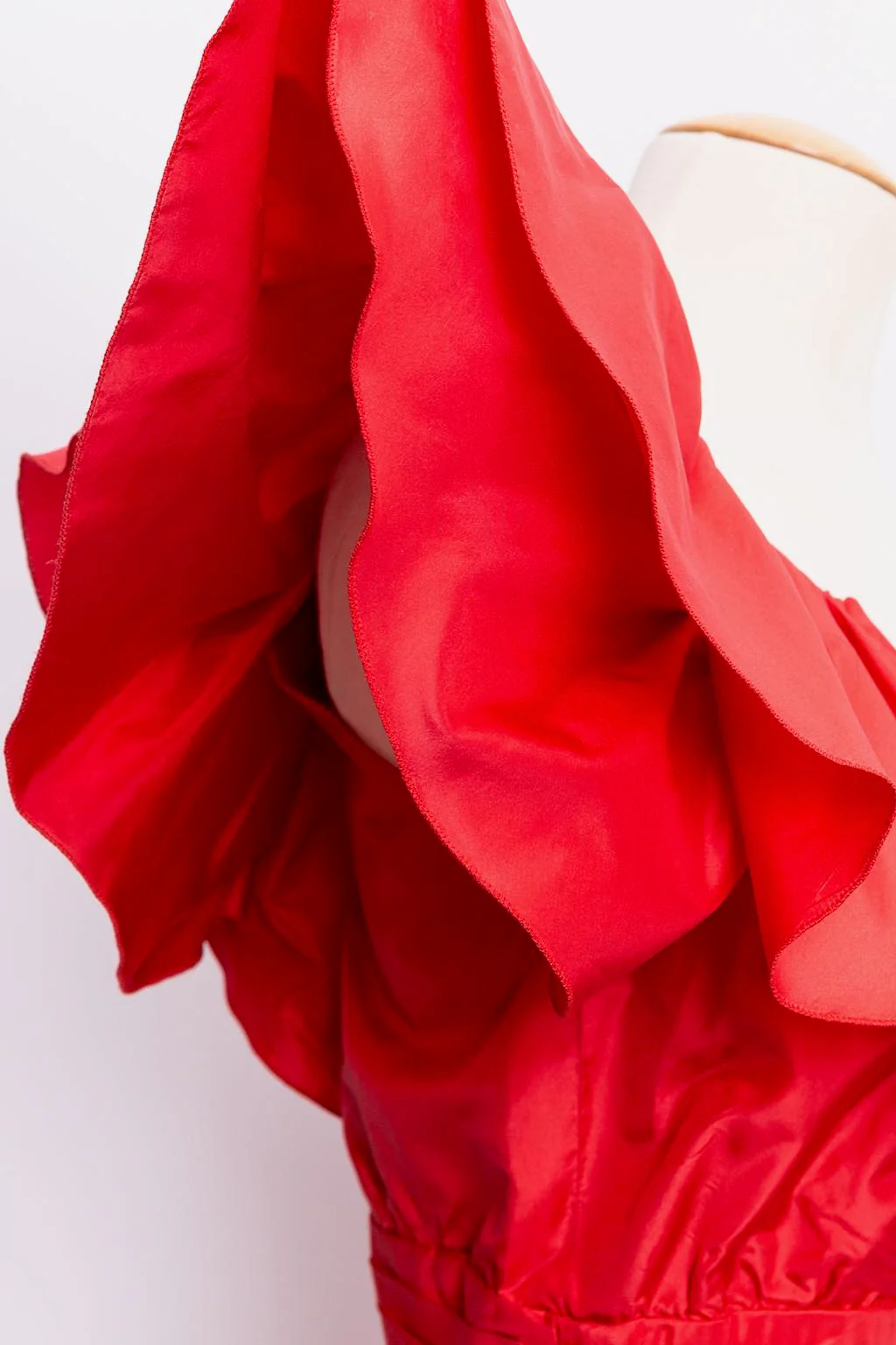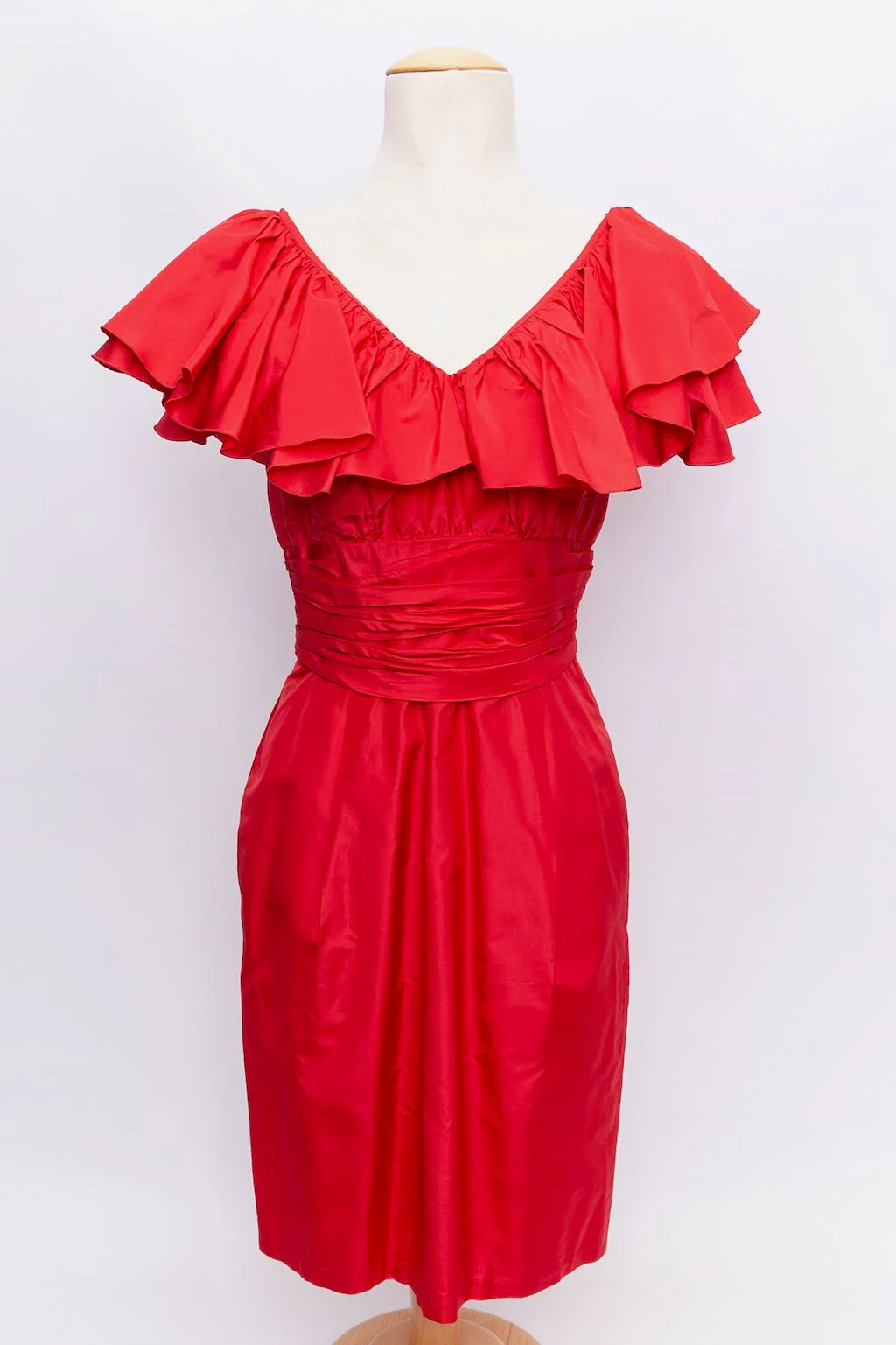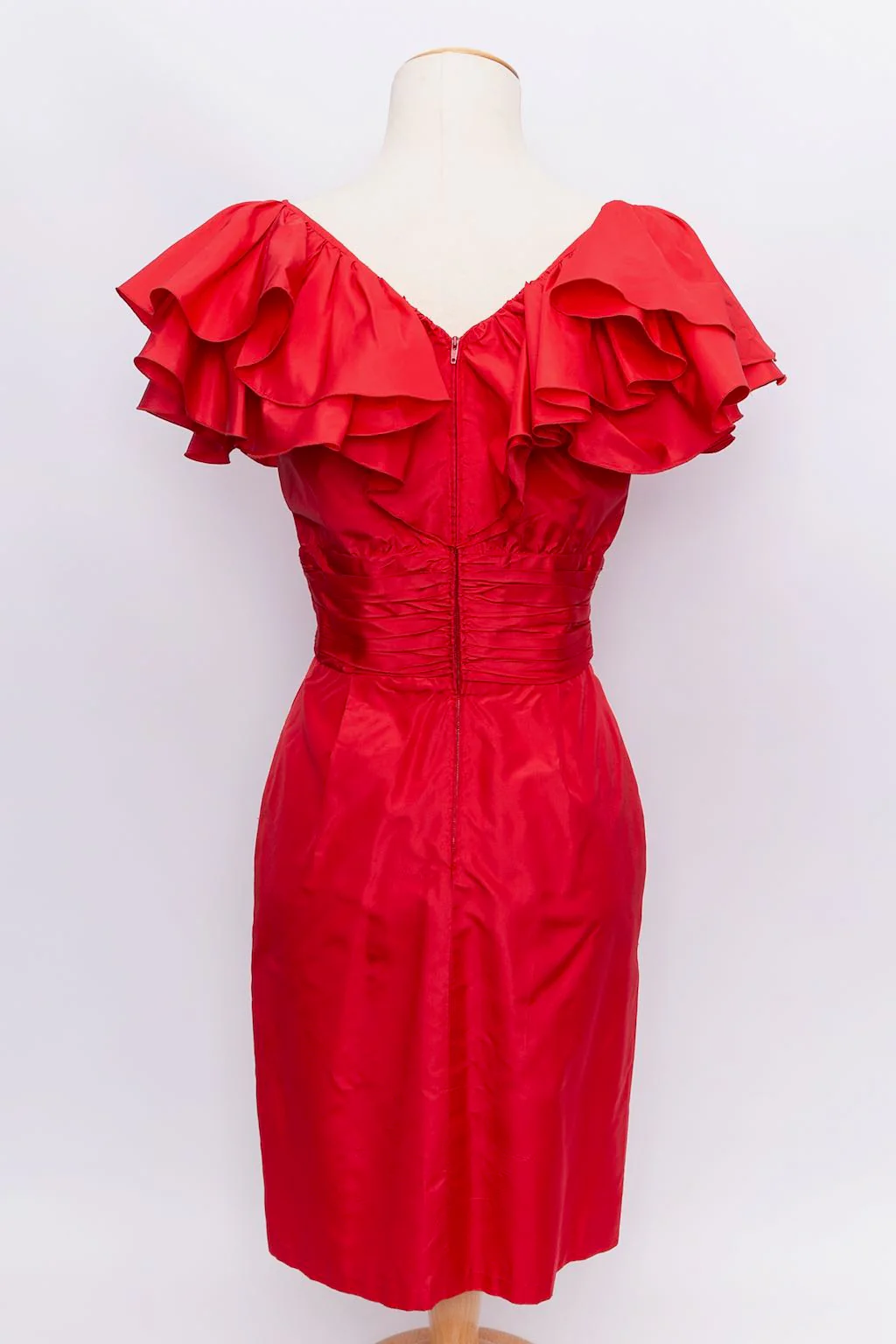 AZZARO -(Made in Italy) Robe en taffetas de soie rouge. Aucune étiquette de composition ou de taille, la robe convient à une taille 36FR. Condition : Très bon état Dimensions :
