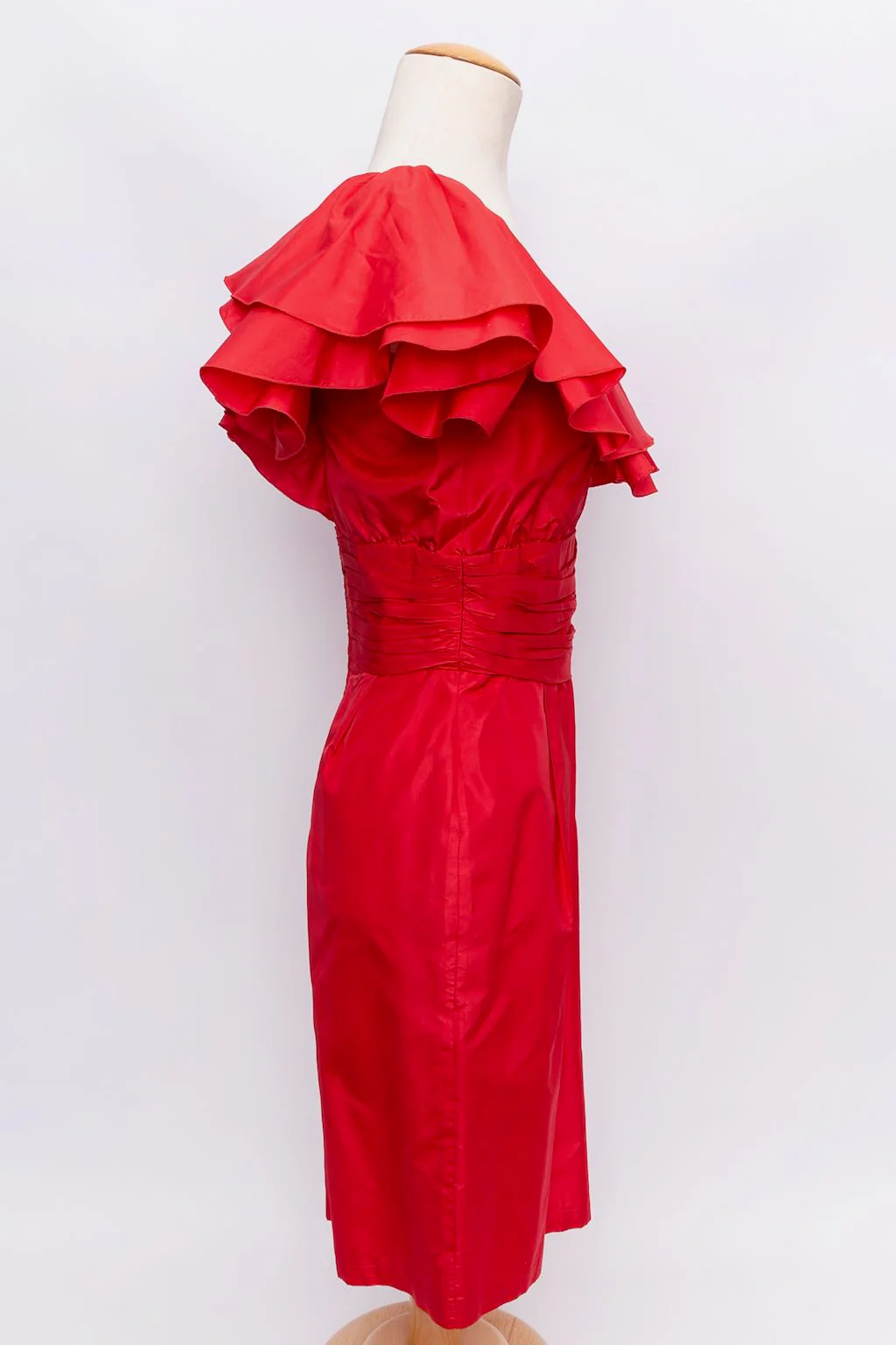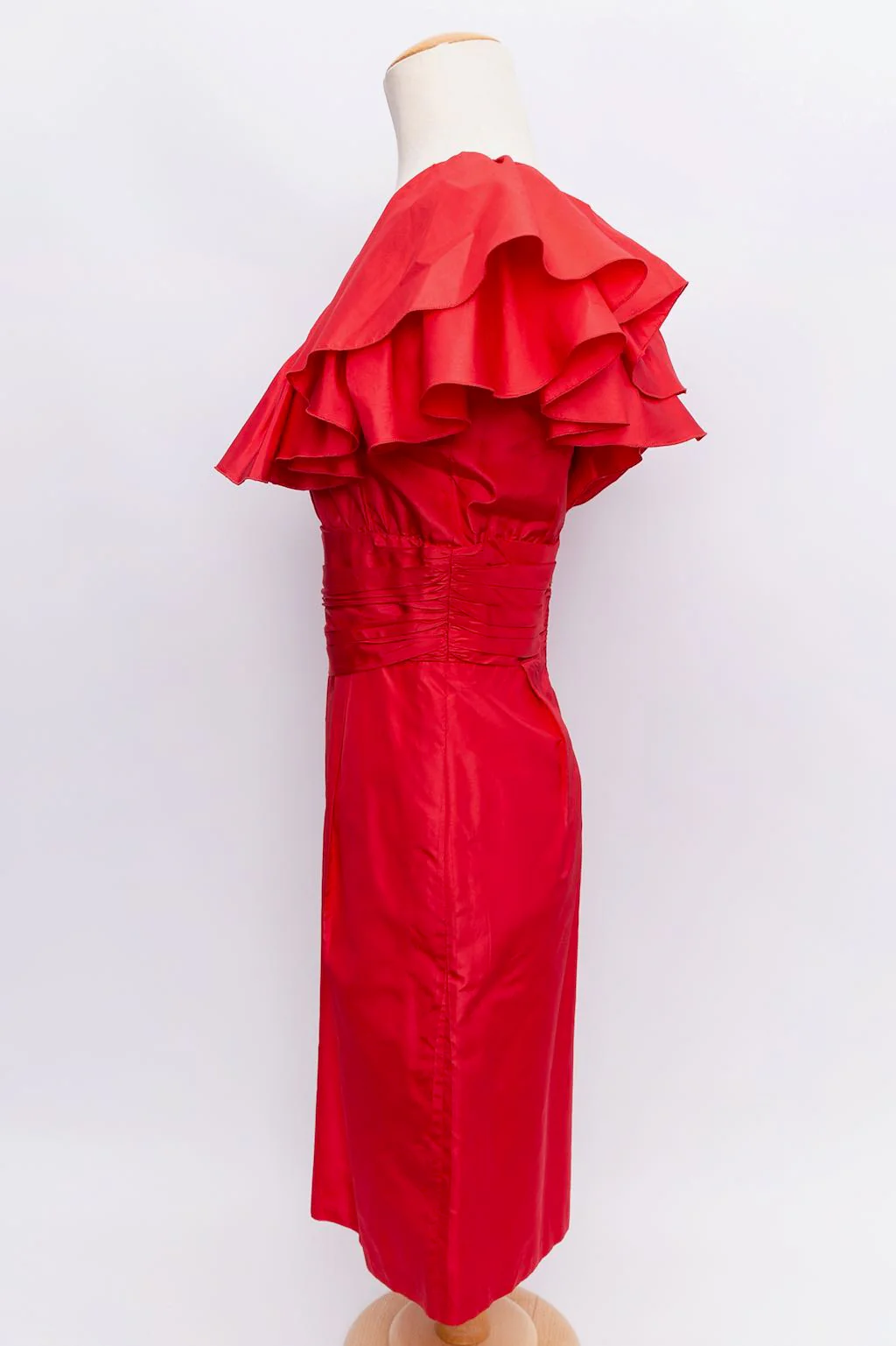 AZZARO -(Made in Italy) Robe en taffetas de soie rouge. Aucune étiquette de composition ou de taille, la robe convient à une taille 36FR.