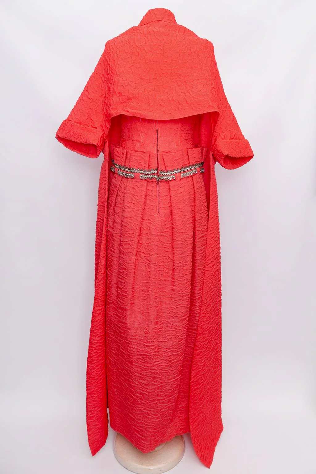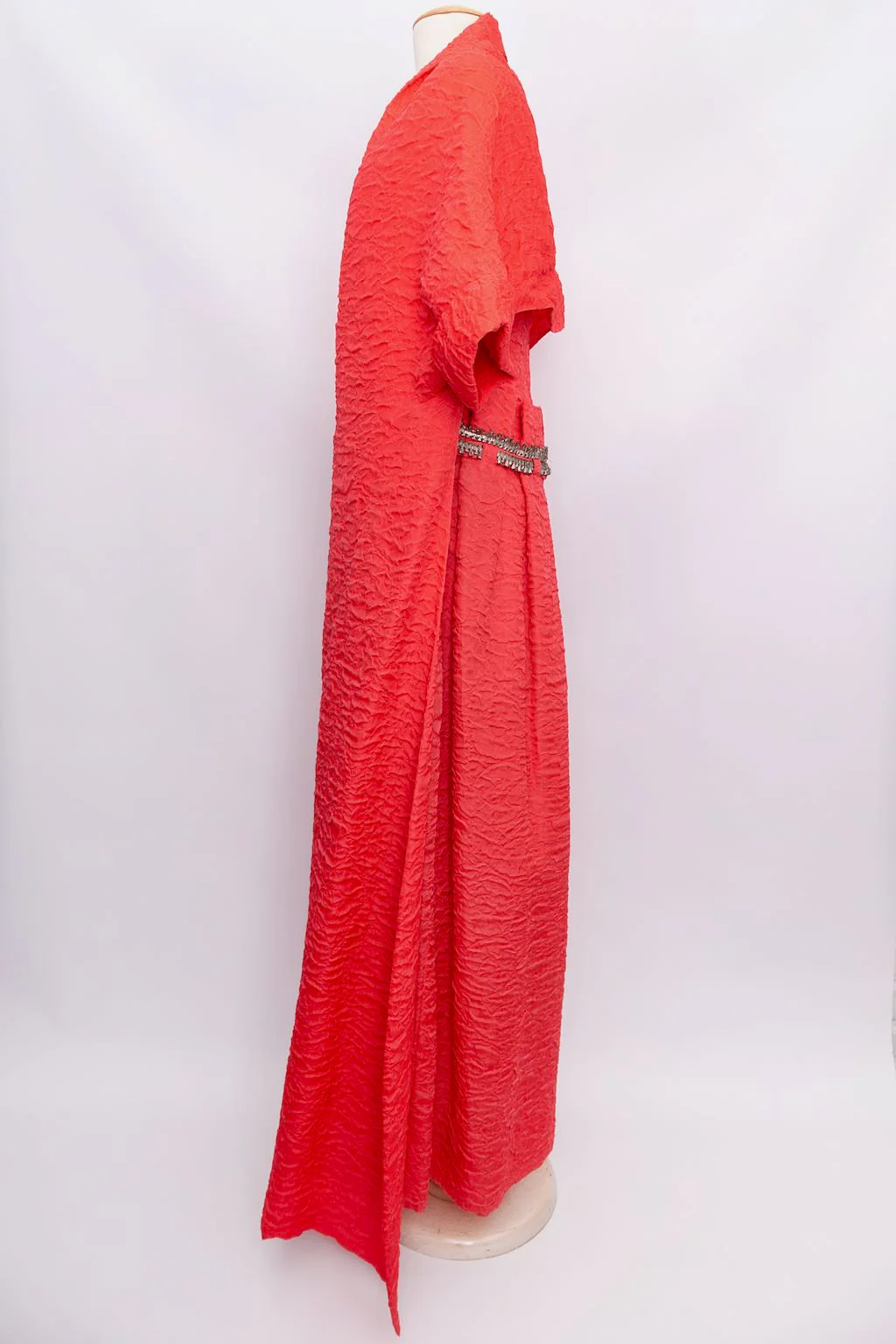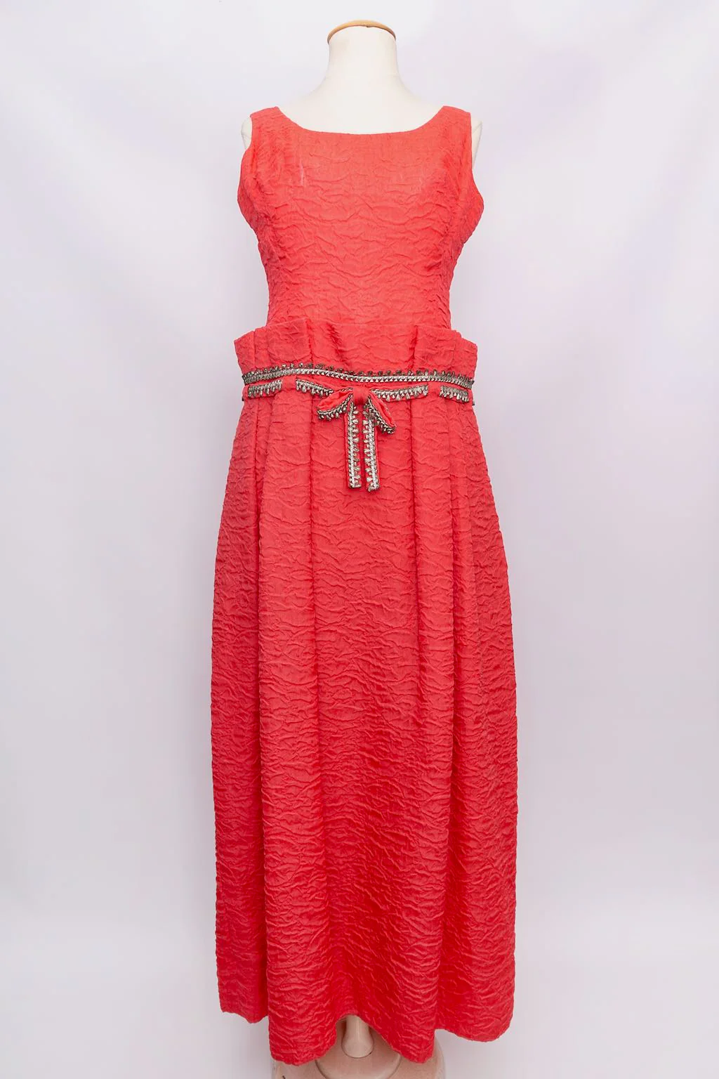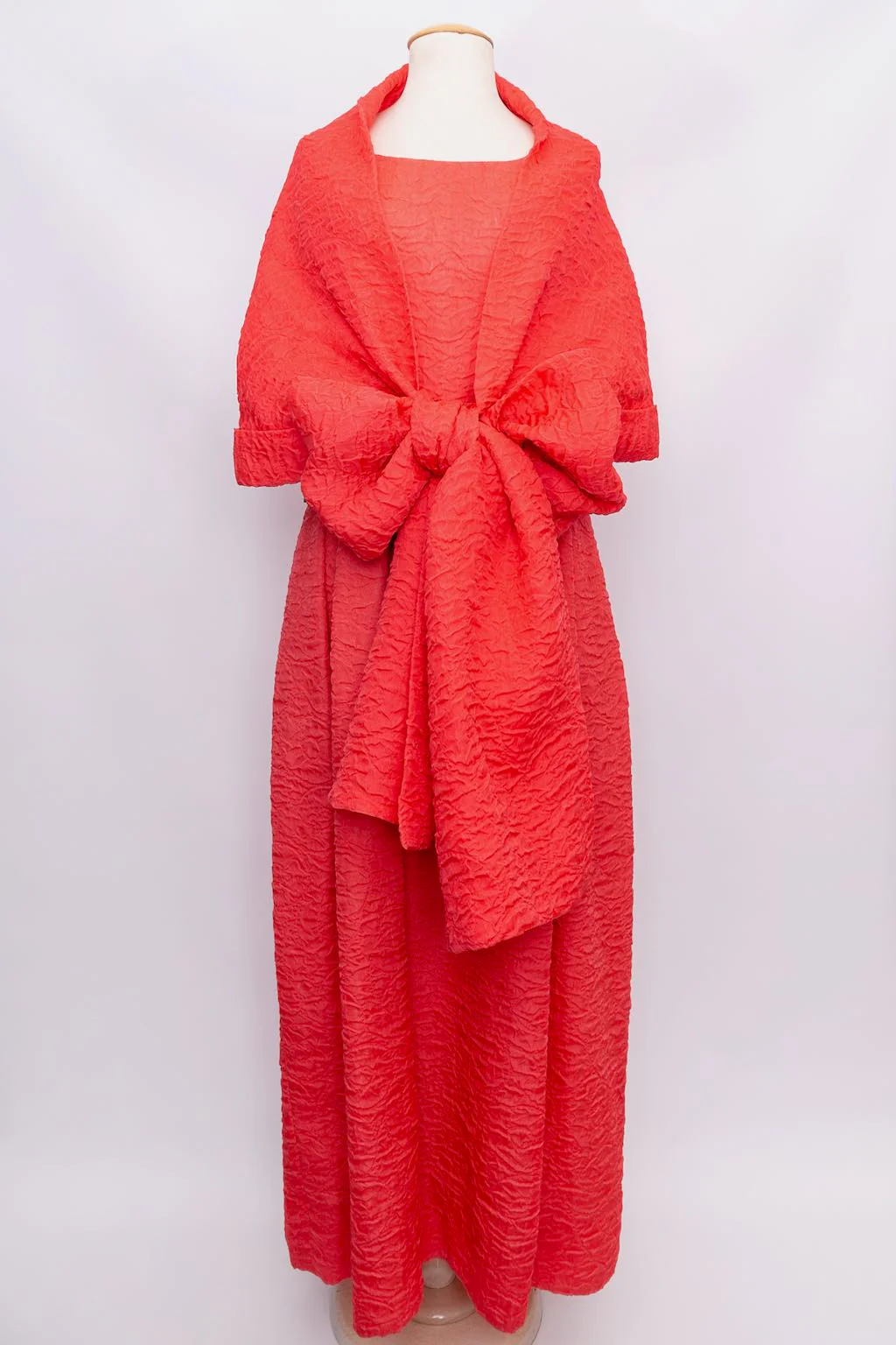 VALENS -Robe et son boléro en organza gaufré dans les tons de rose. Etiquettes de taille et de compositions absentes, elle correspond à une taille 40FR. Condition : Très bon état Dimensions :