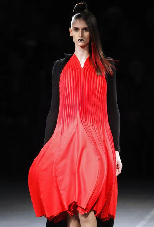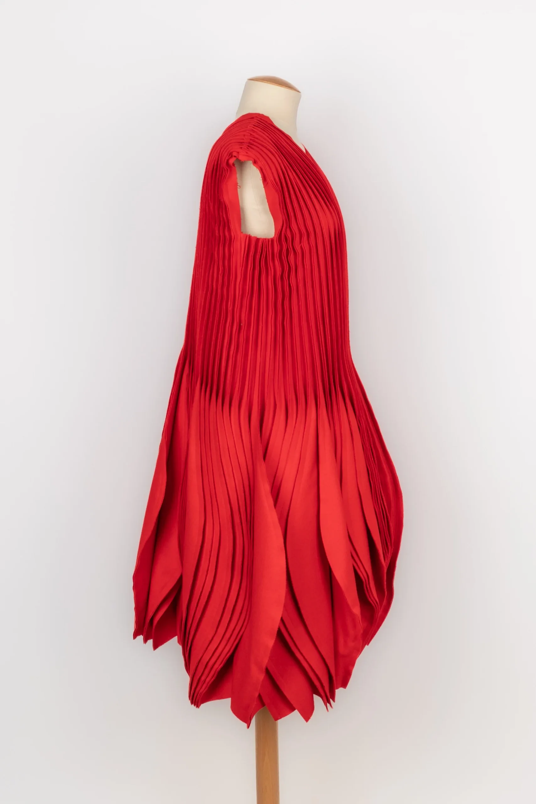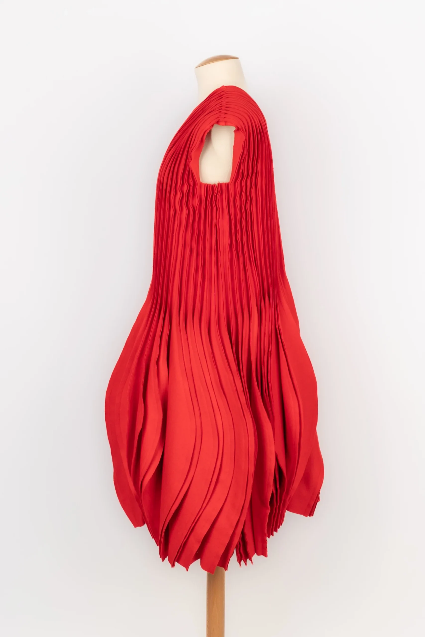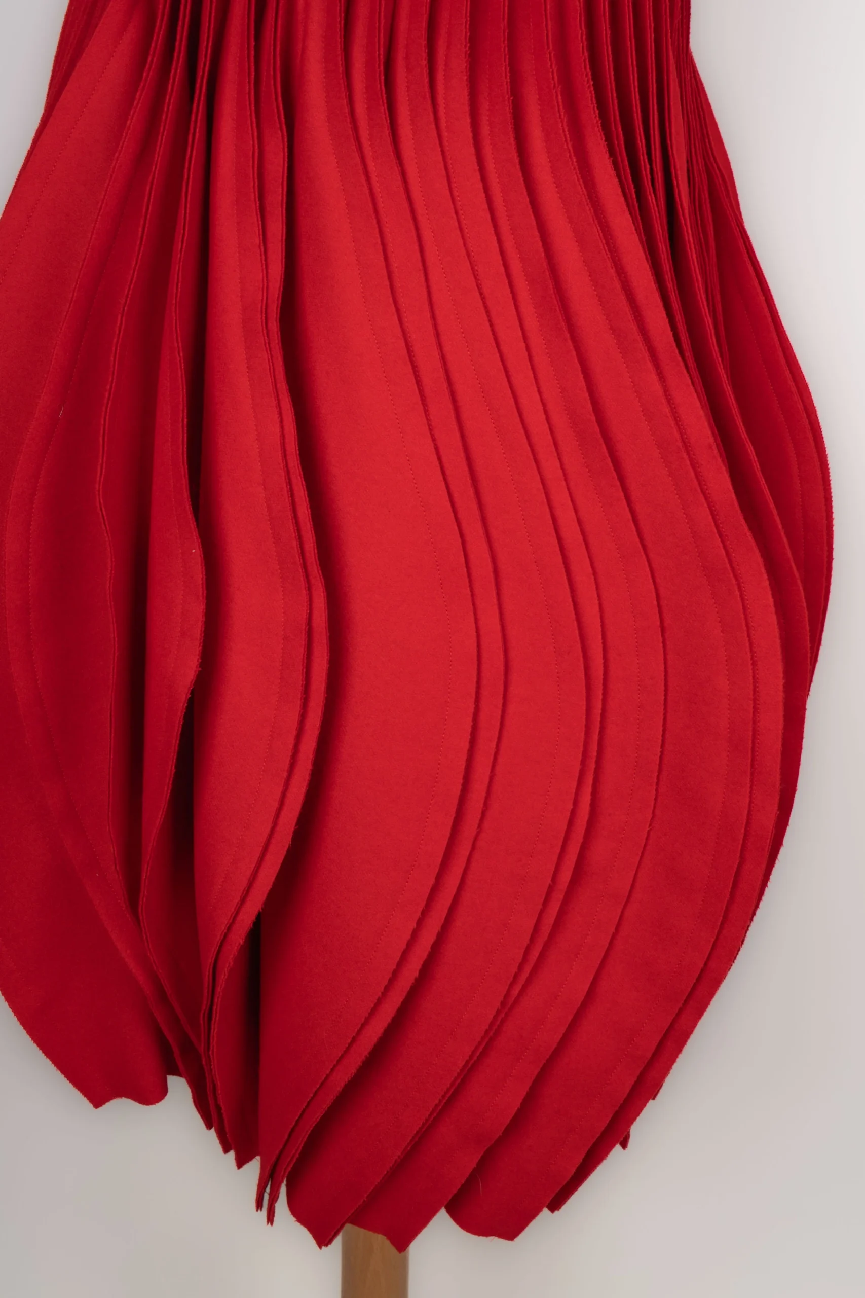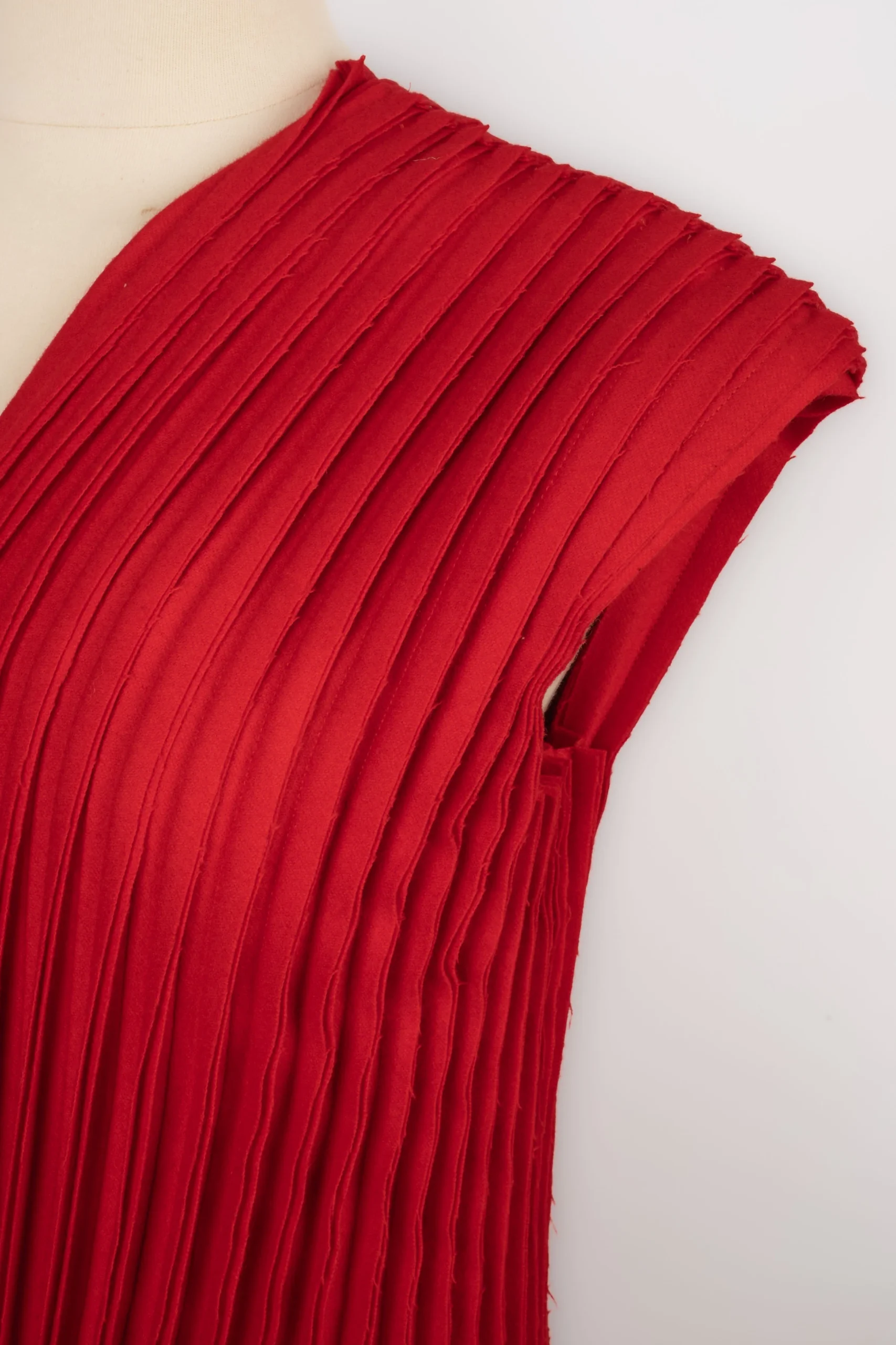 YAMAMOTO – (Made in Japan) Robe sans manches en lainage rouge plissé. Taille indiquée 2, elle convient à un 40FR/42FR. Collection Automne-Hiver 2012.