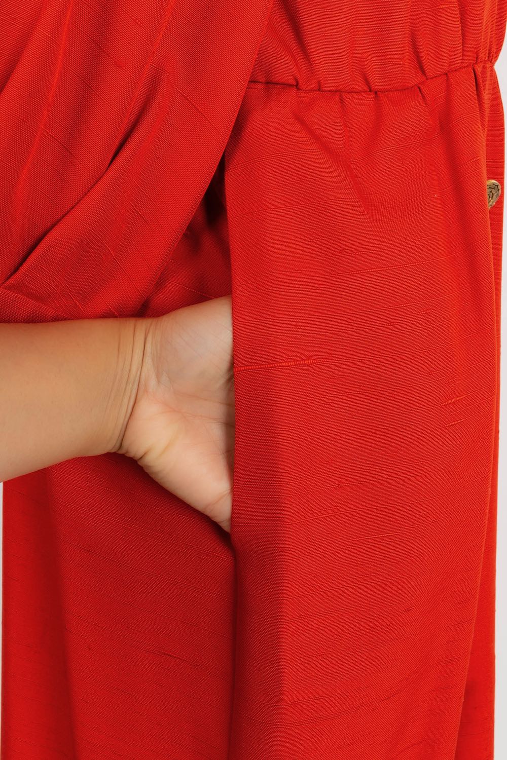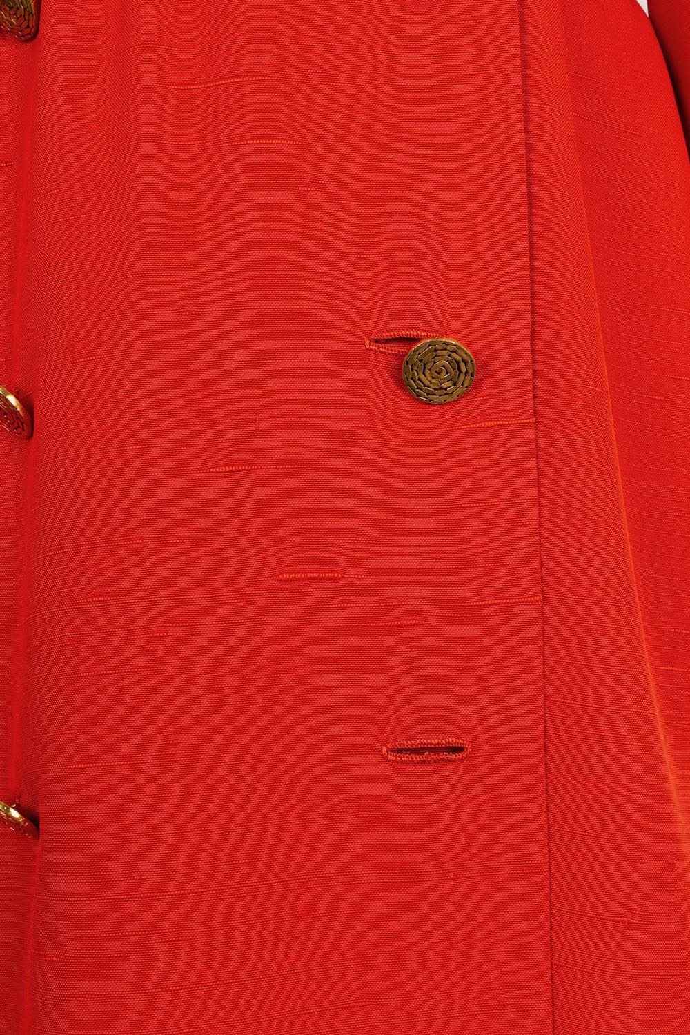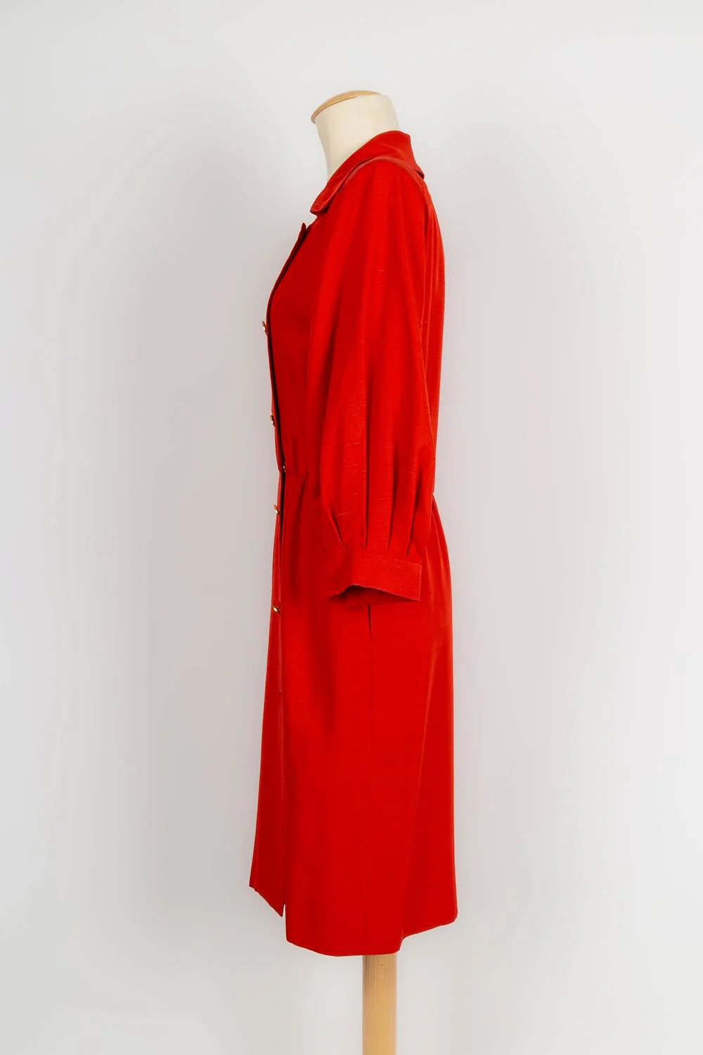 YVES SAINT LAURENT -(Made in France) Robe en soie sauvage rouge et boutons en métal doré. Pas de taille indiquée, elle correspond à un 36FR. Collection Haute Couture 1984.