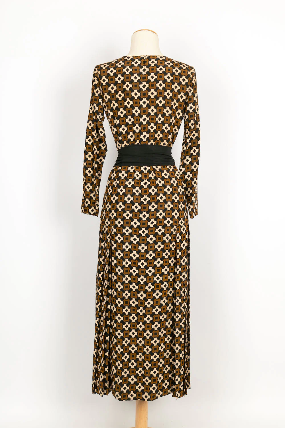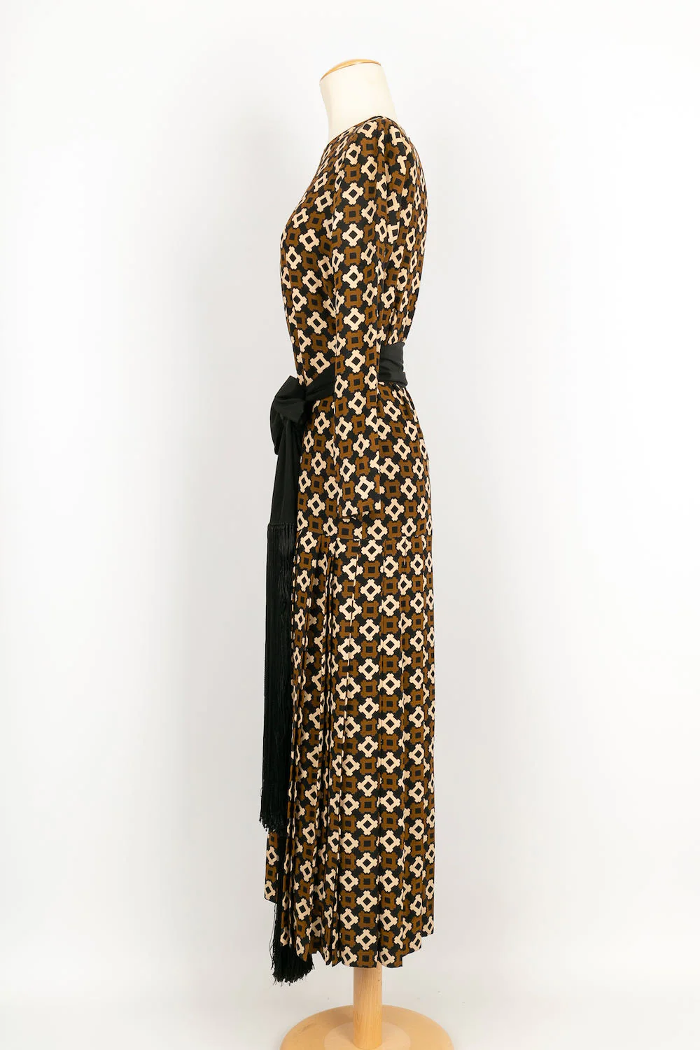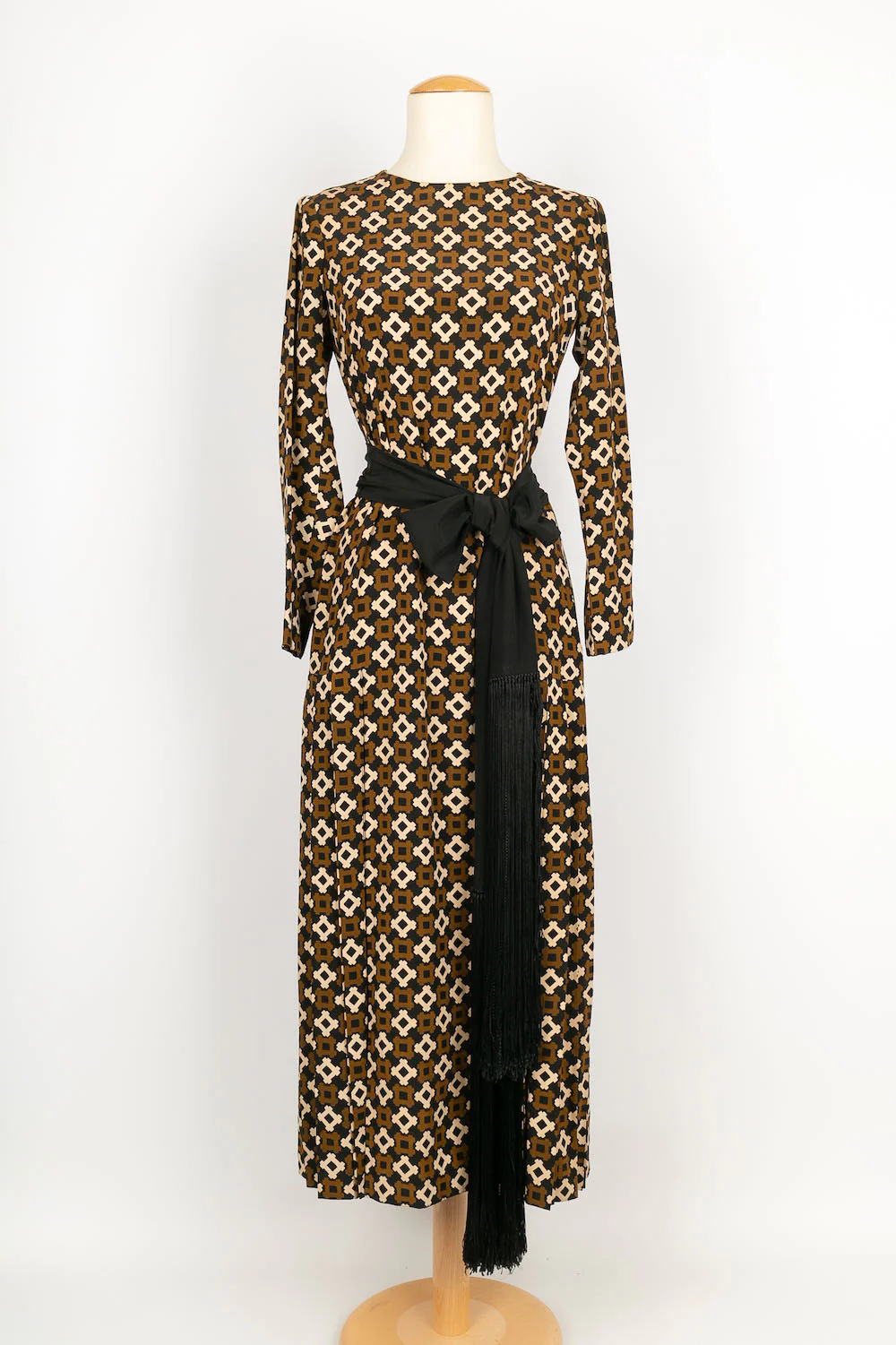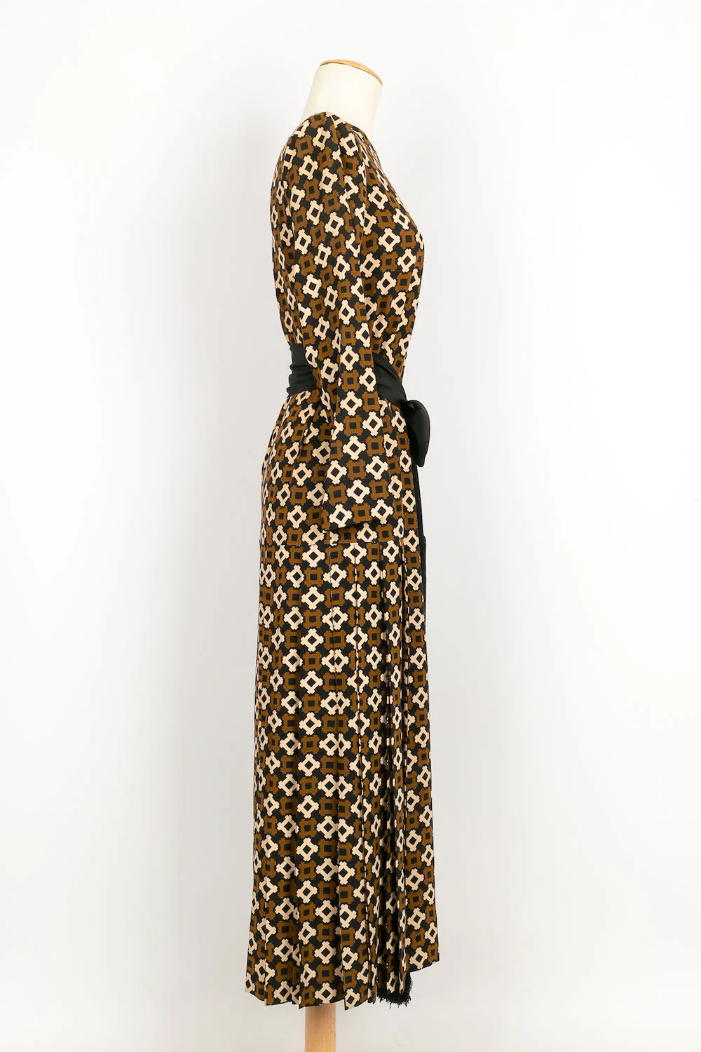 YVES SAINT LAURENT -(Made in France) Robe en soie accompagnée de sa ceinture en soie noire. Pas de taille indiquée, elle convient à un 36FR.