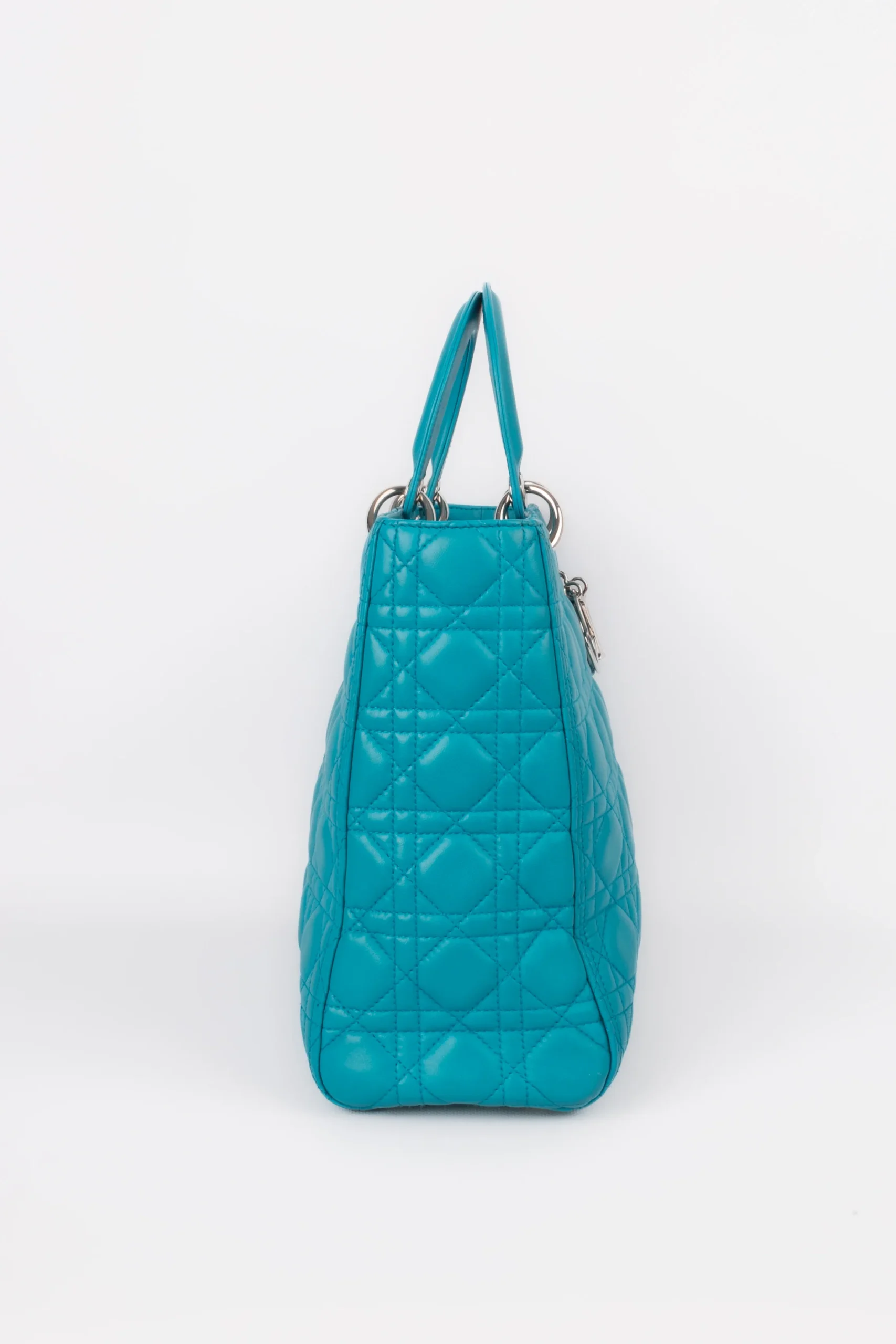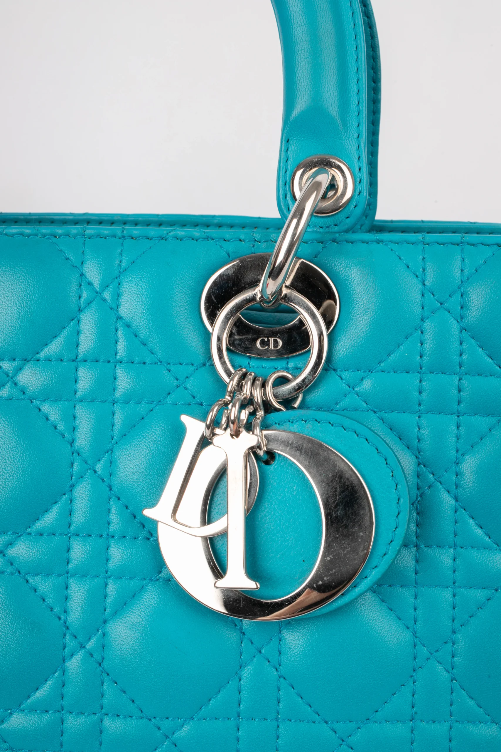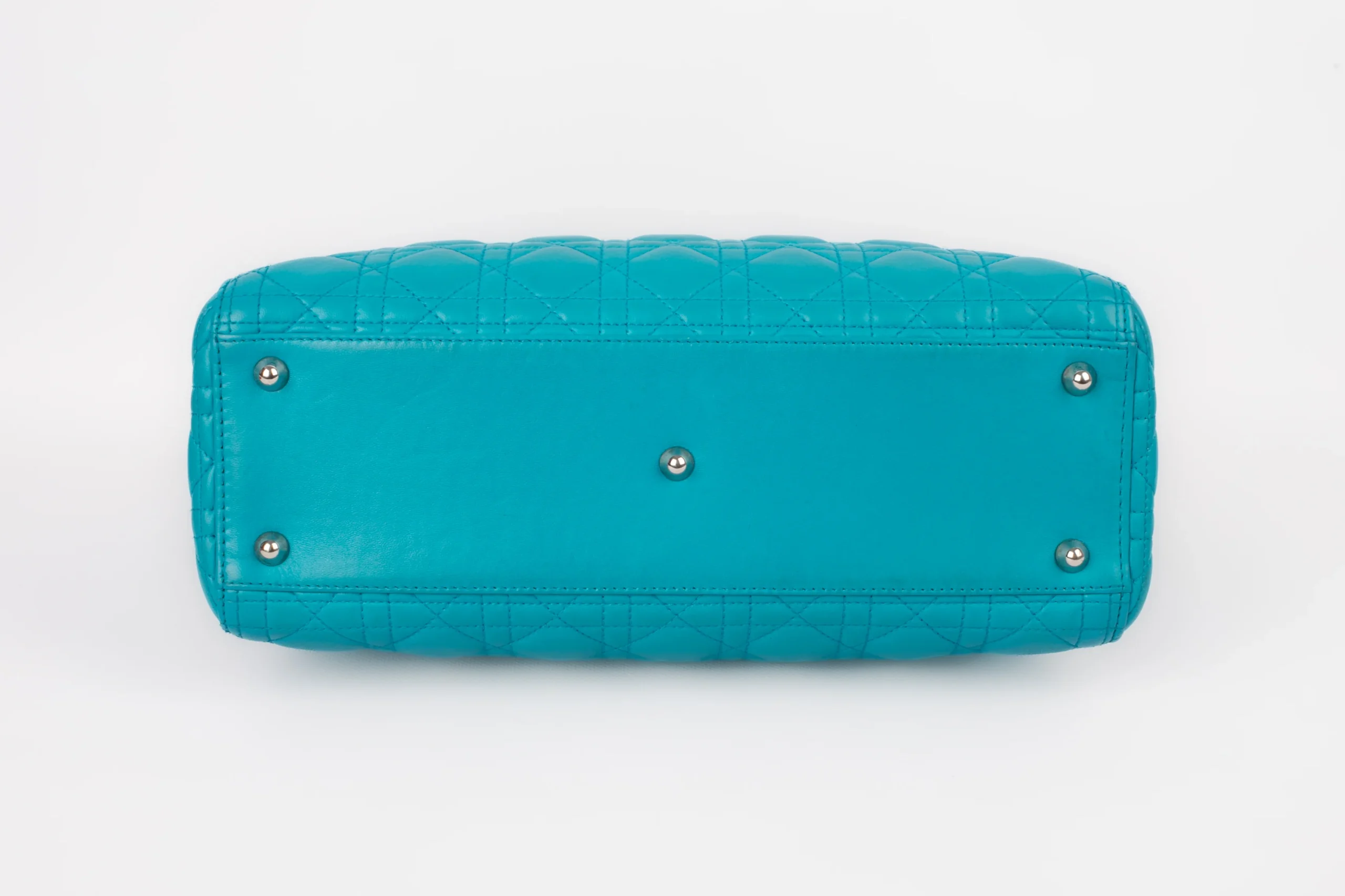 DIOR -(Made in Italy) Sac Lady Dior en cuir matelassé bleu turquoise, attributs en métal argenté. Numéro de série présent. Collection 2013.