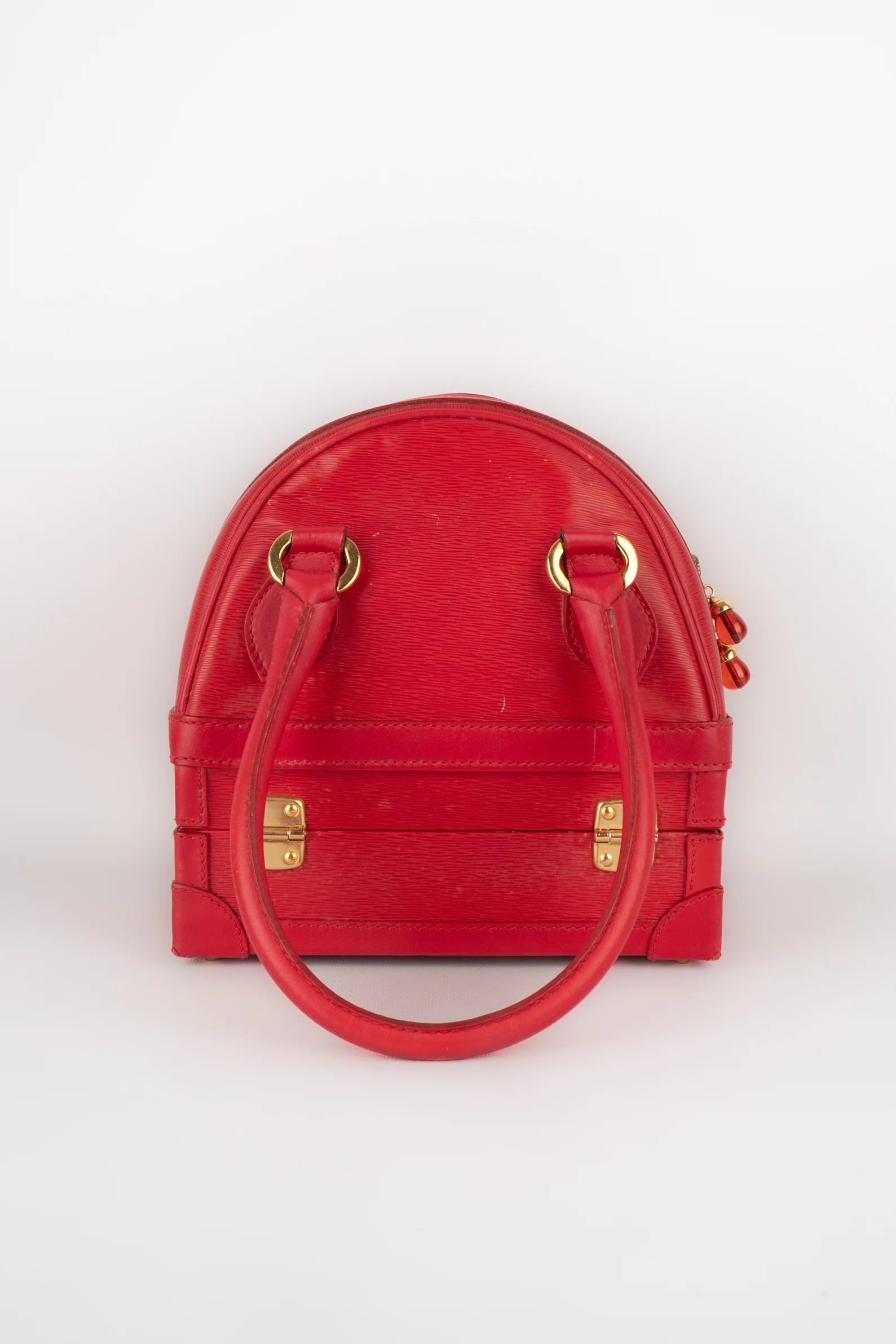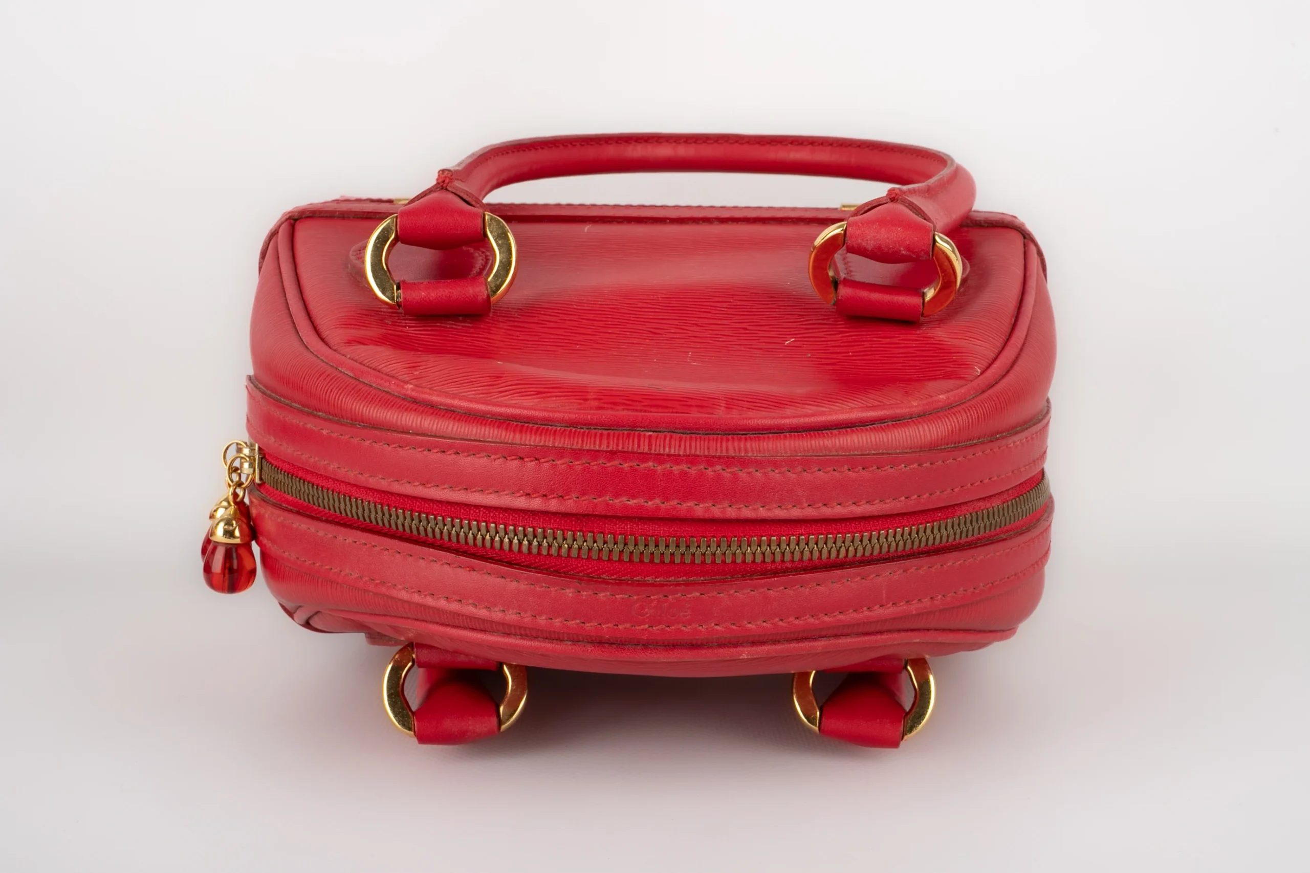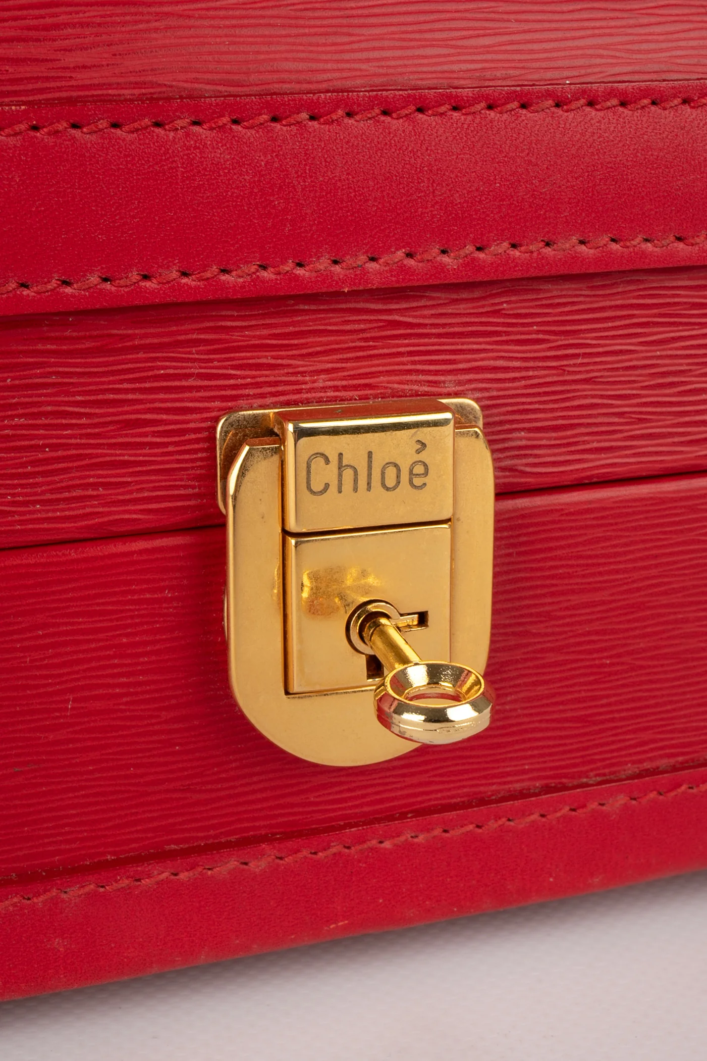 CHLOĆ -Sac mallette en veau pressĆ© rouge, double poignĆ©e, fermeture Ć©clair, curseur Ć gouttes en pĆ¢te de verre ambrĆ©e, bas du sac Ć caisson. Condition : Bon Ć©tat Dimensions : Hauteur : 22,5 cm – Longueur : 22 cm – Profondeur : 12 cm – Longueur anses : 50 cm
