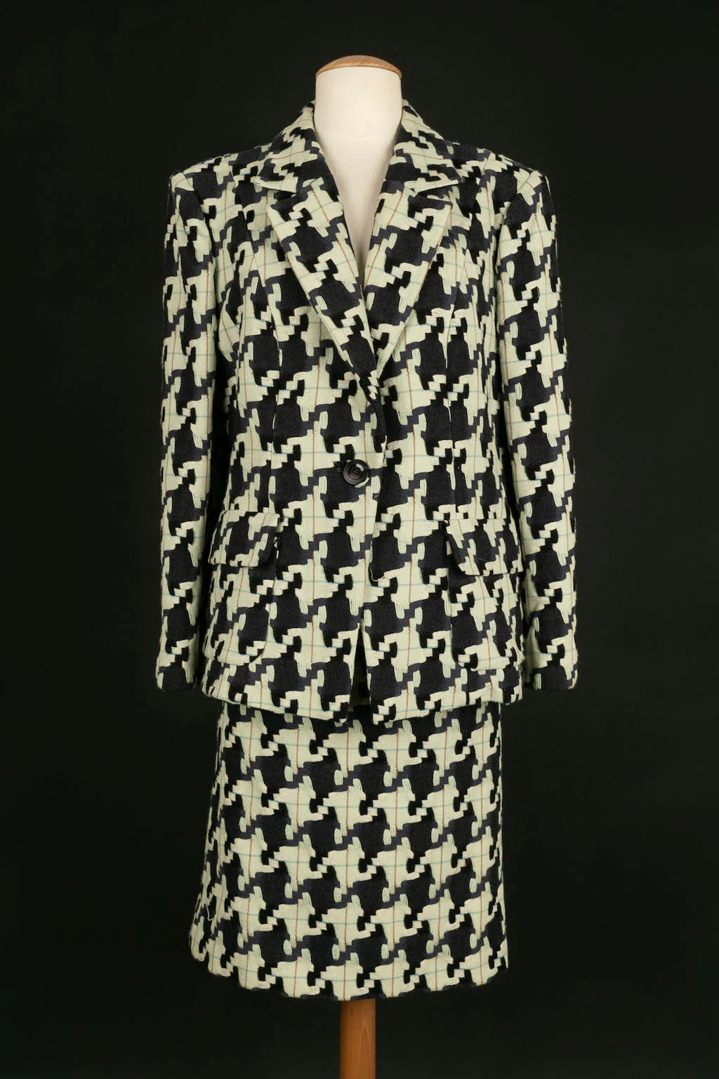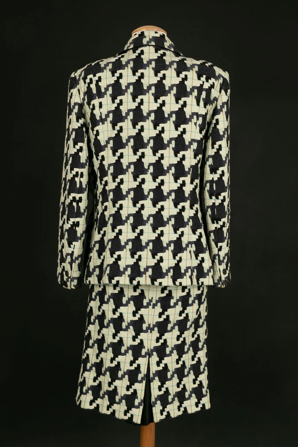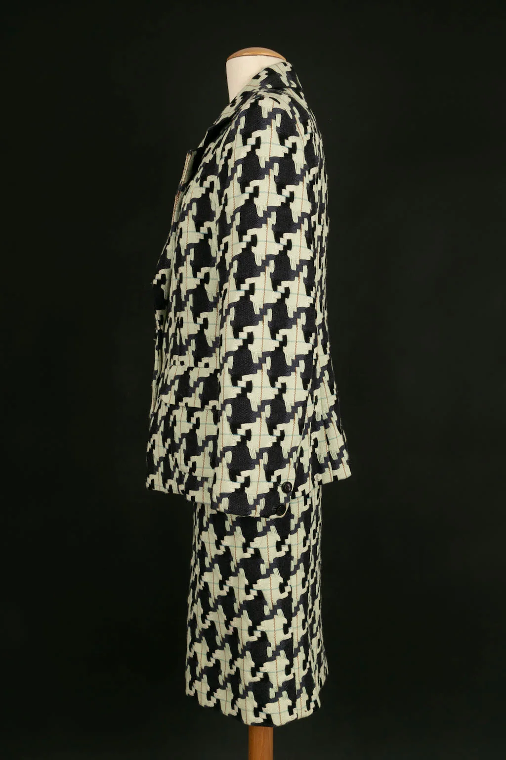 CHRISTIAN LACROIX -(Made in France) Ensemble de tailleur jupe et veste en laine à motif pied de poule. Taille indiquée 48FR.