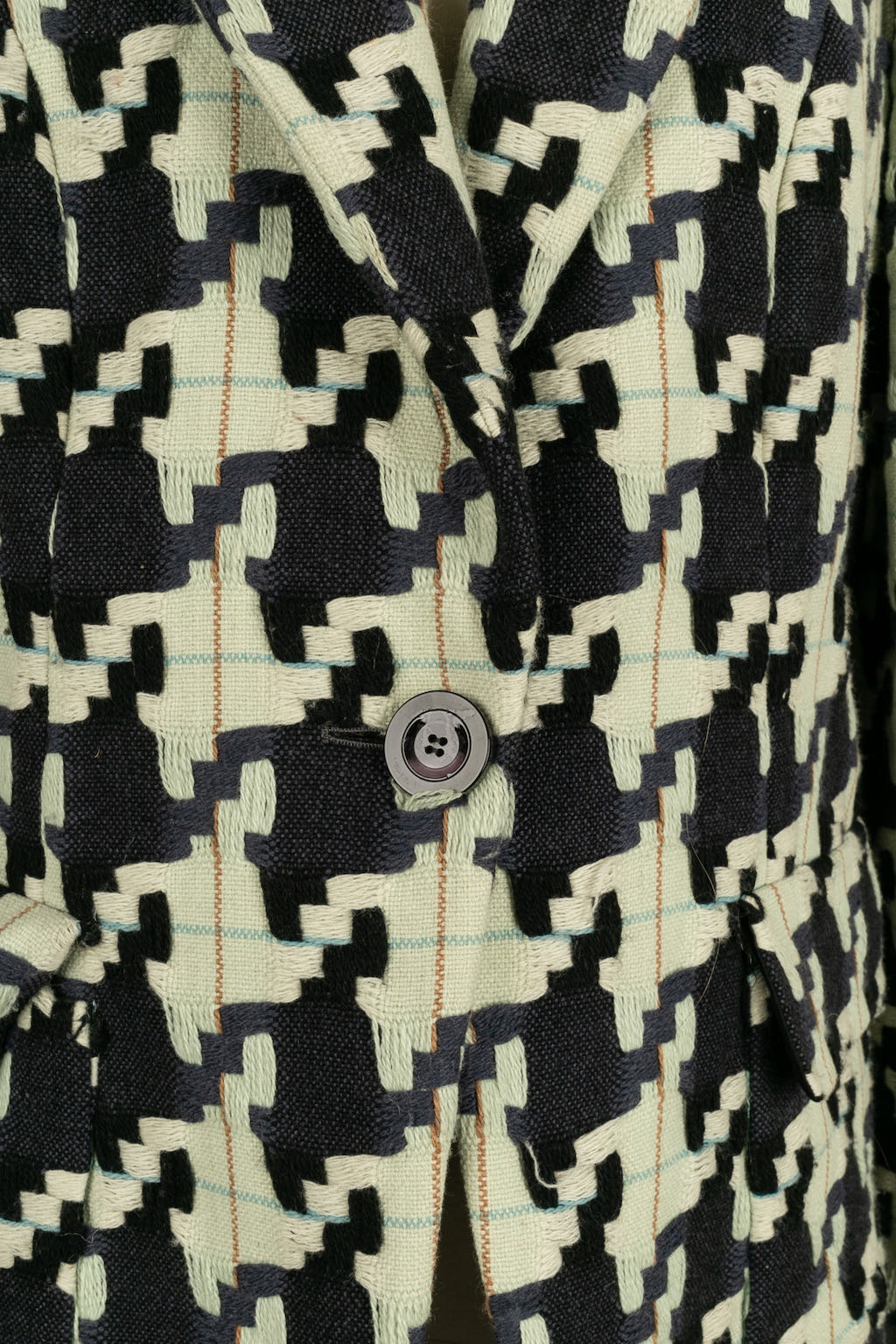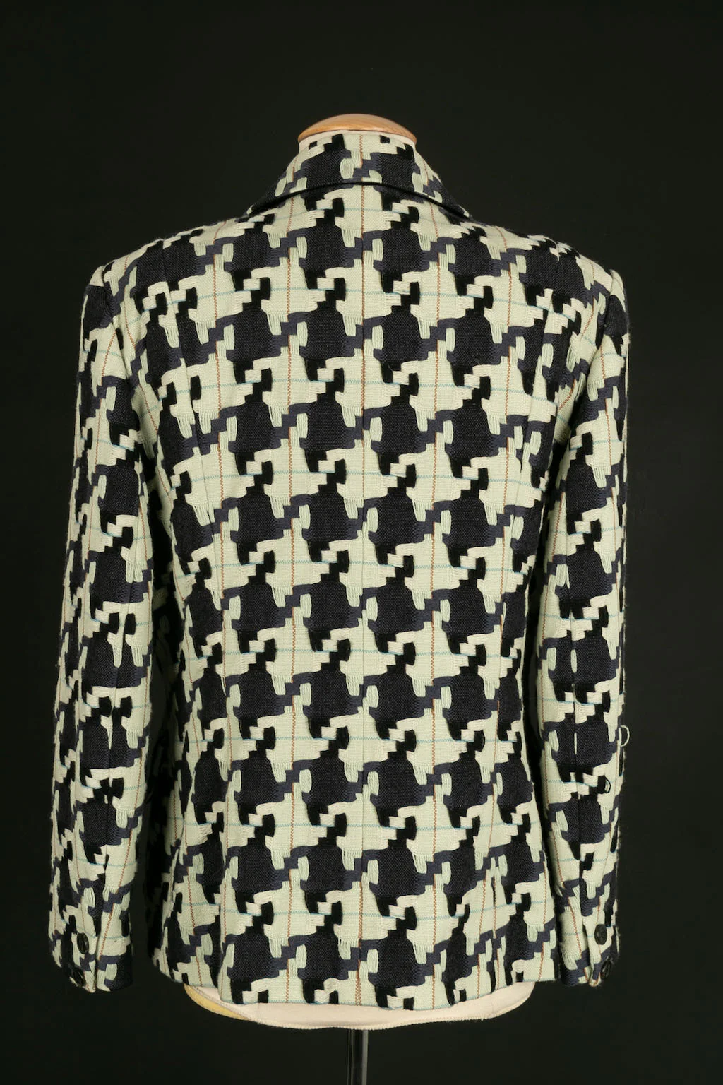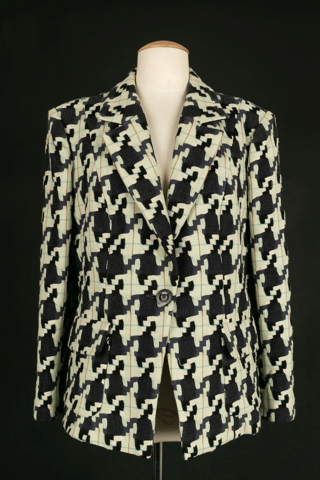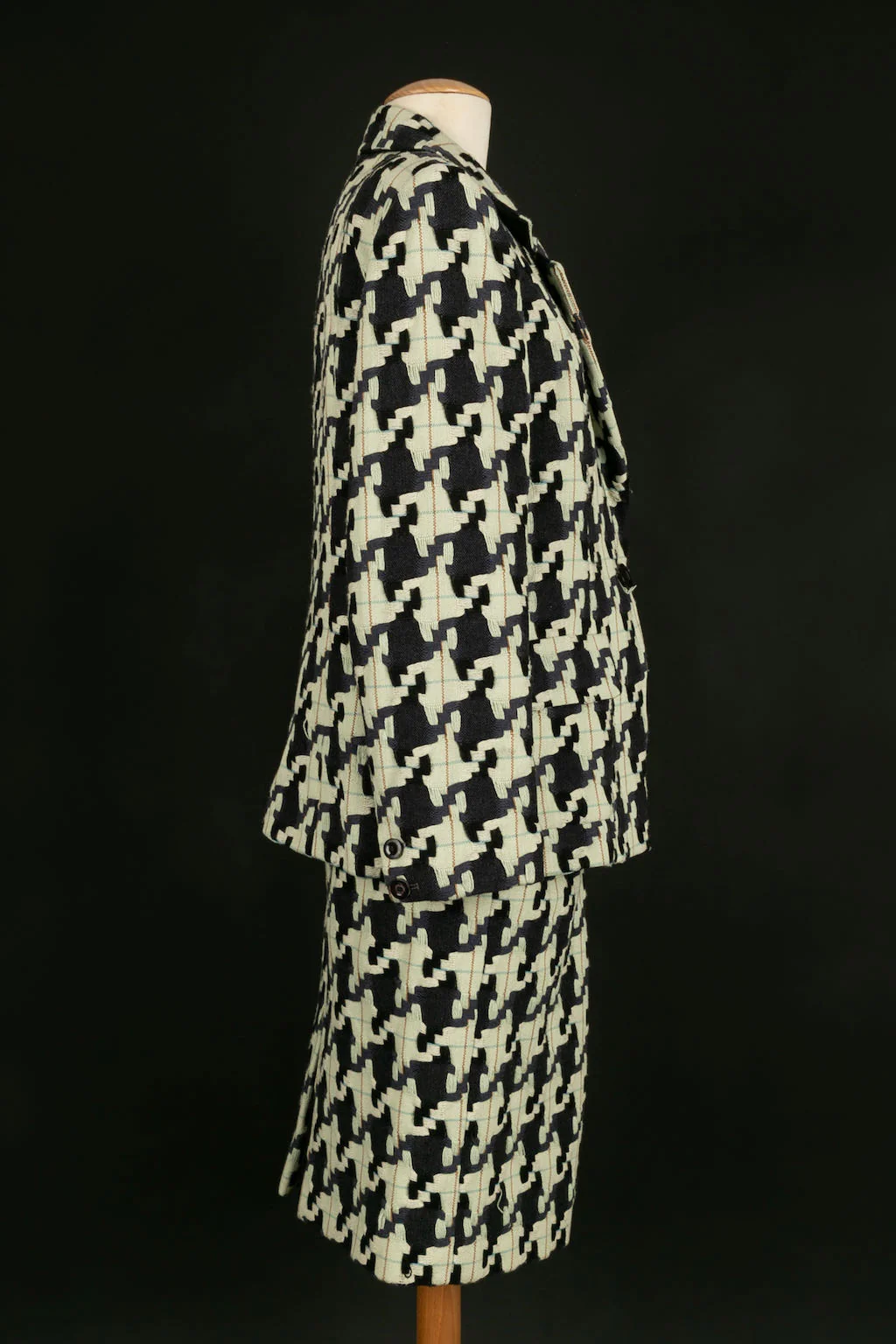 CHRISTIAN LACROIX -(Made in France) Ensemble de tailleur jupe et veste en laine à motif pied de poule. Taille indiquée 48FR.