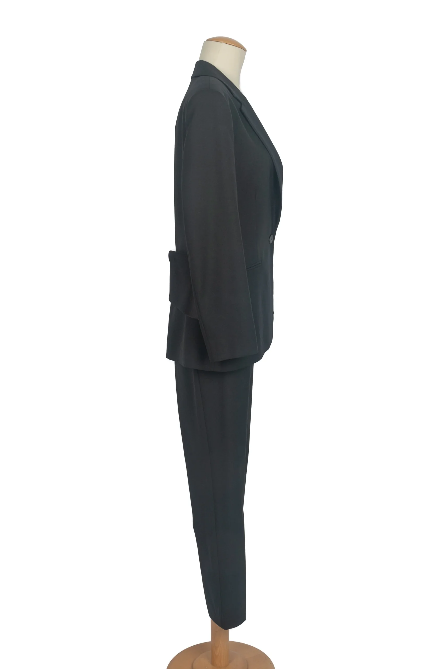 BALENCIAGA – (Made in France) Tailleur pantalon noir. Doublure en soie. Taille 40FR.