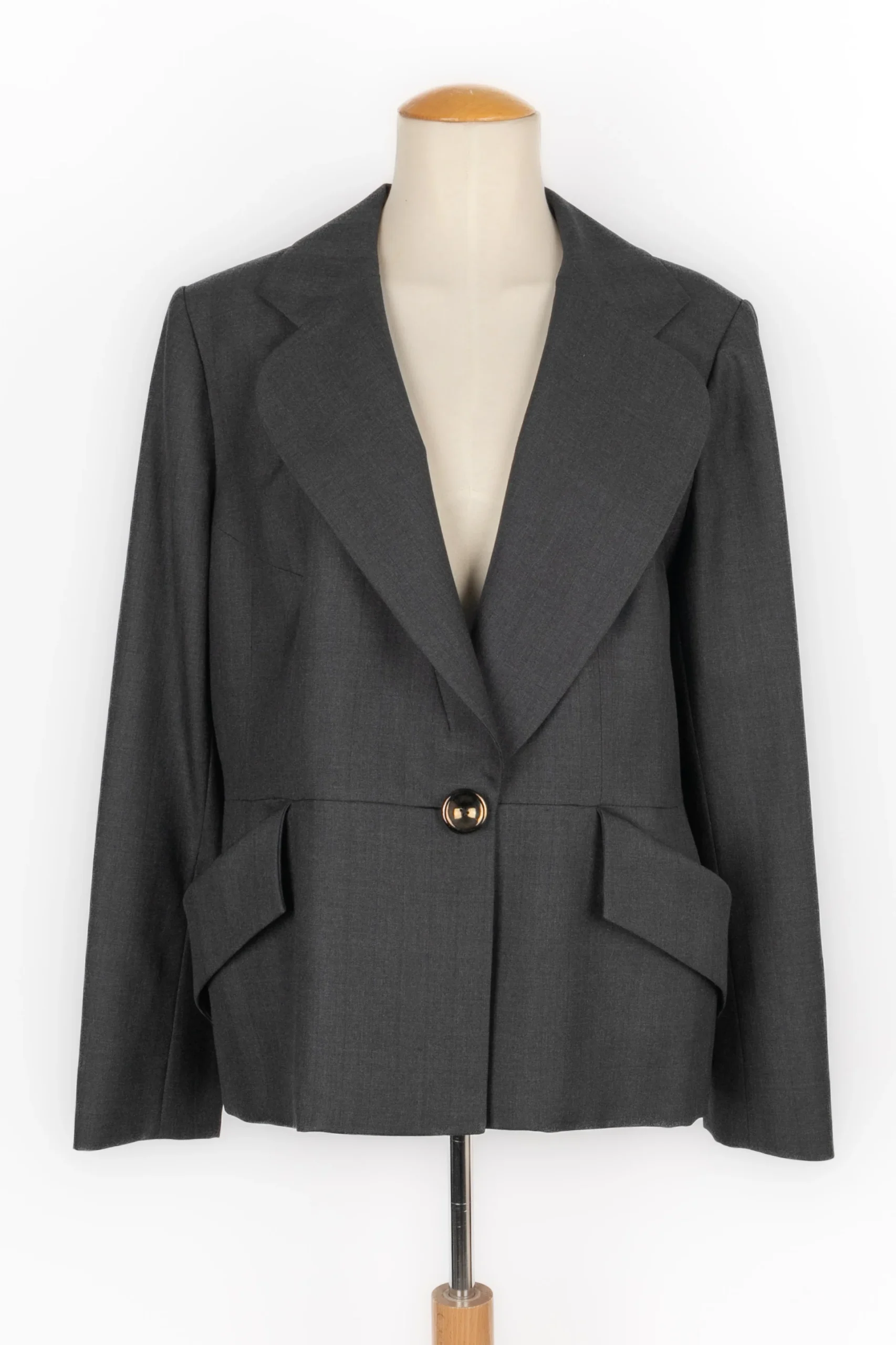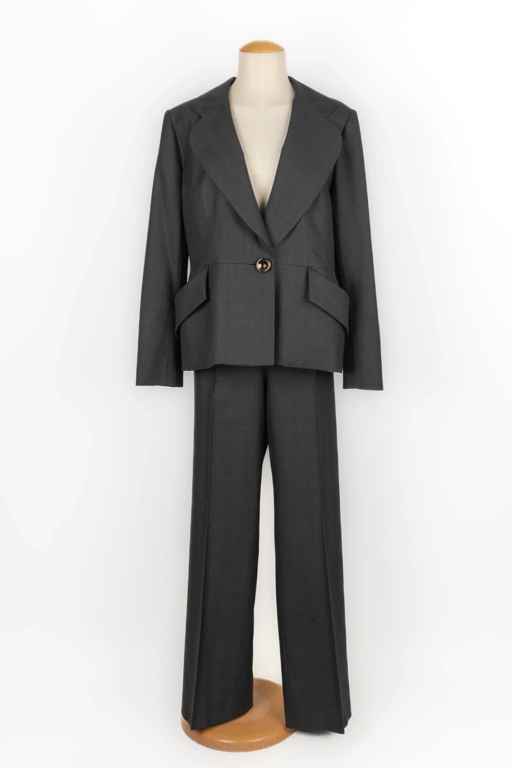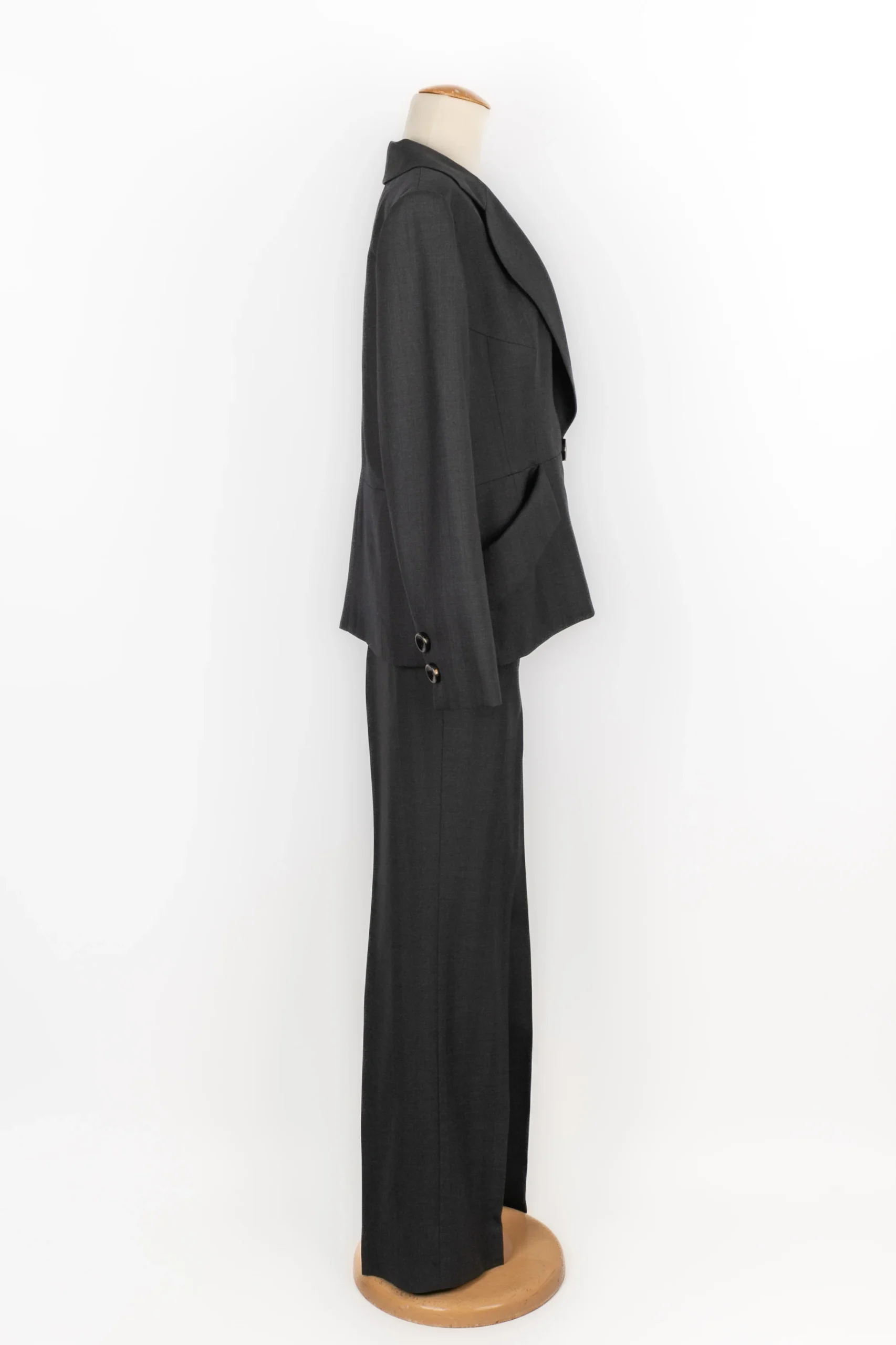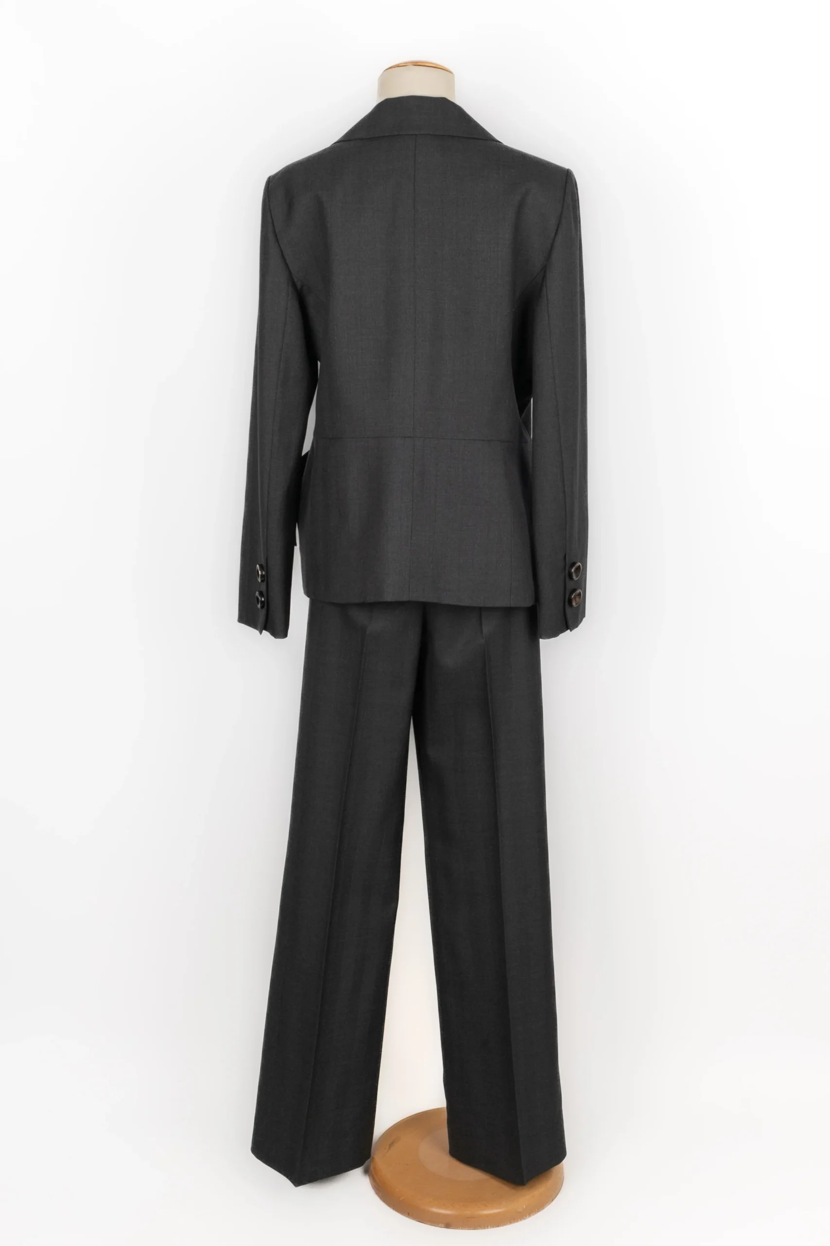 DIOR -(Made in France) Tailleur pantalon en laine grise et doublure en soie. Taille 44FR.