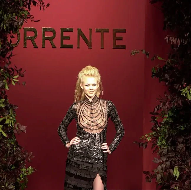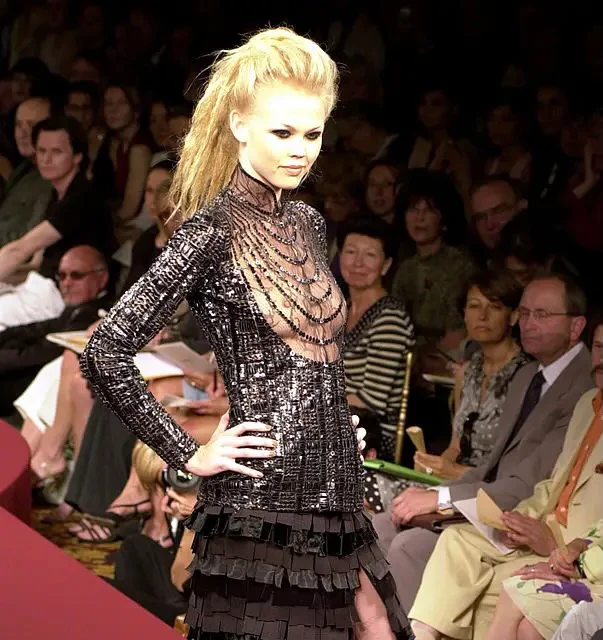 TORRENTE -Top à manches longues en dentelle noire entièrement brodé de motif en cuir noir et perles noires. Pas de taille indiquée, il convient à un 34FR/36FR. Collection Haute Couture Automne-Hiver 2002-2003. Etiquette de marques absente. Condition : Très bon état Dimensions : Largeur d’épaules : 37 cm – Poitrine : 43 cm – Longueur […]