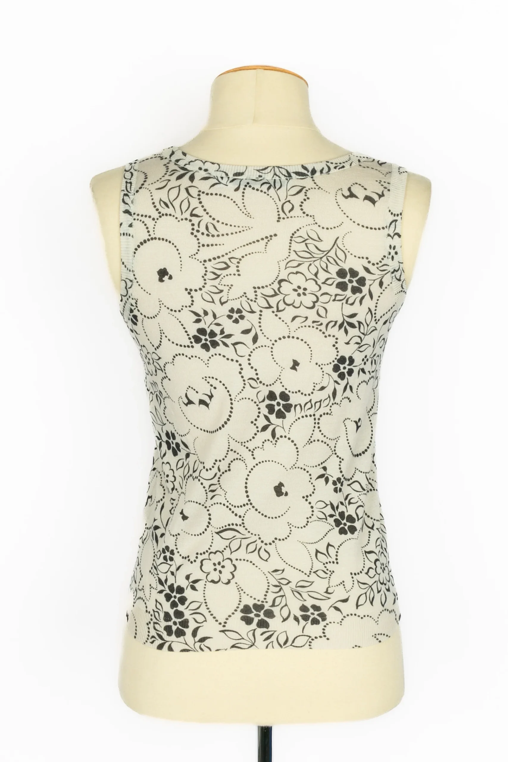 DIOR – (Made in Italy) Twin set en laine et soie blanc et noir cousu de paillettes et de noeuds. Taille 34FR. Condition : Très bon état Dimensions : Gilet : Largeur d’épaules : 42 cm – Poitrine : 52 cm – Longueur des manches : 43 cm – Longueur : 54 cm // Top […]