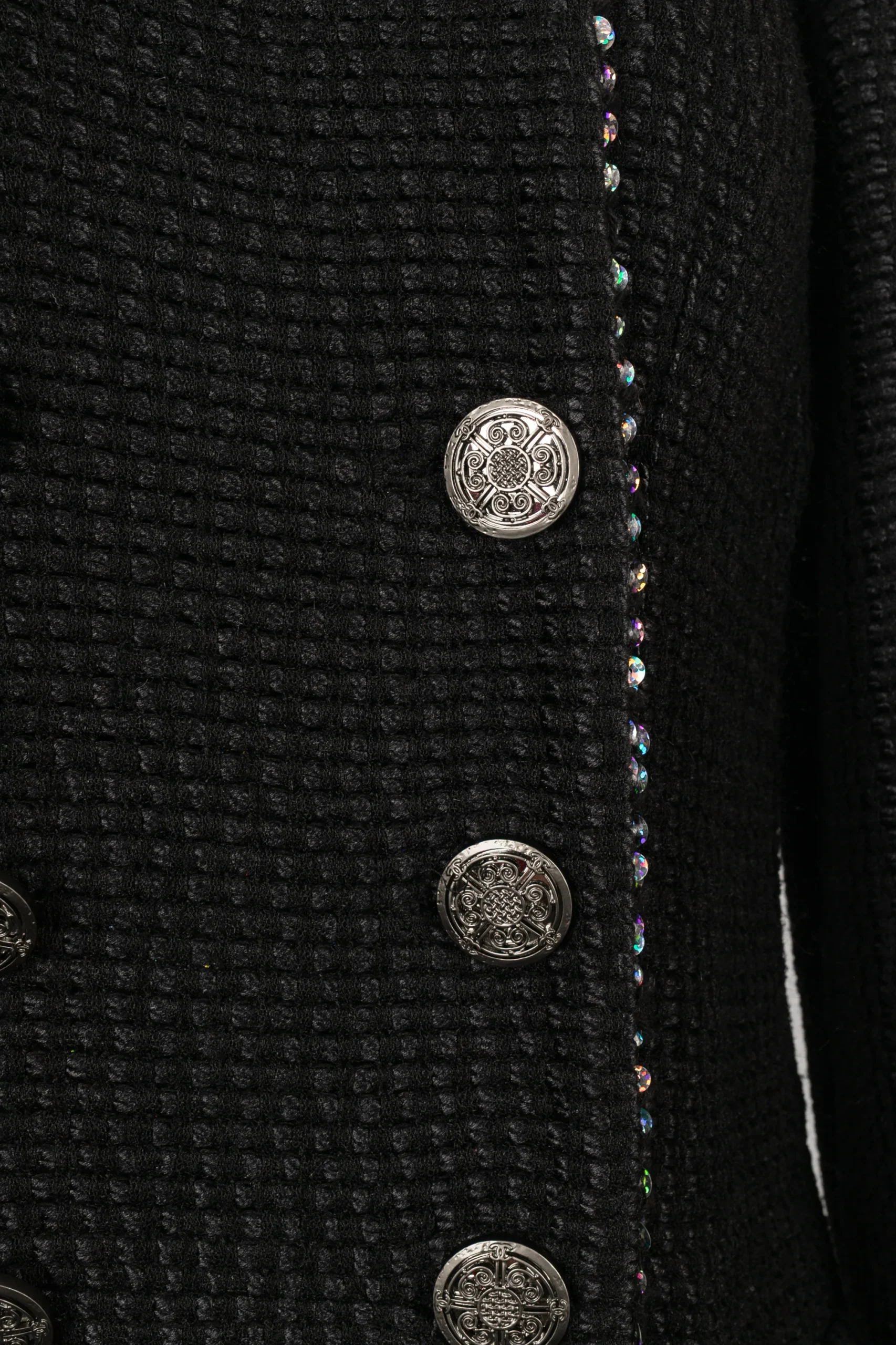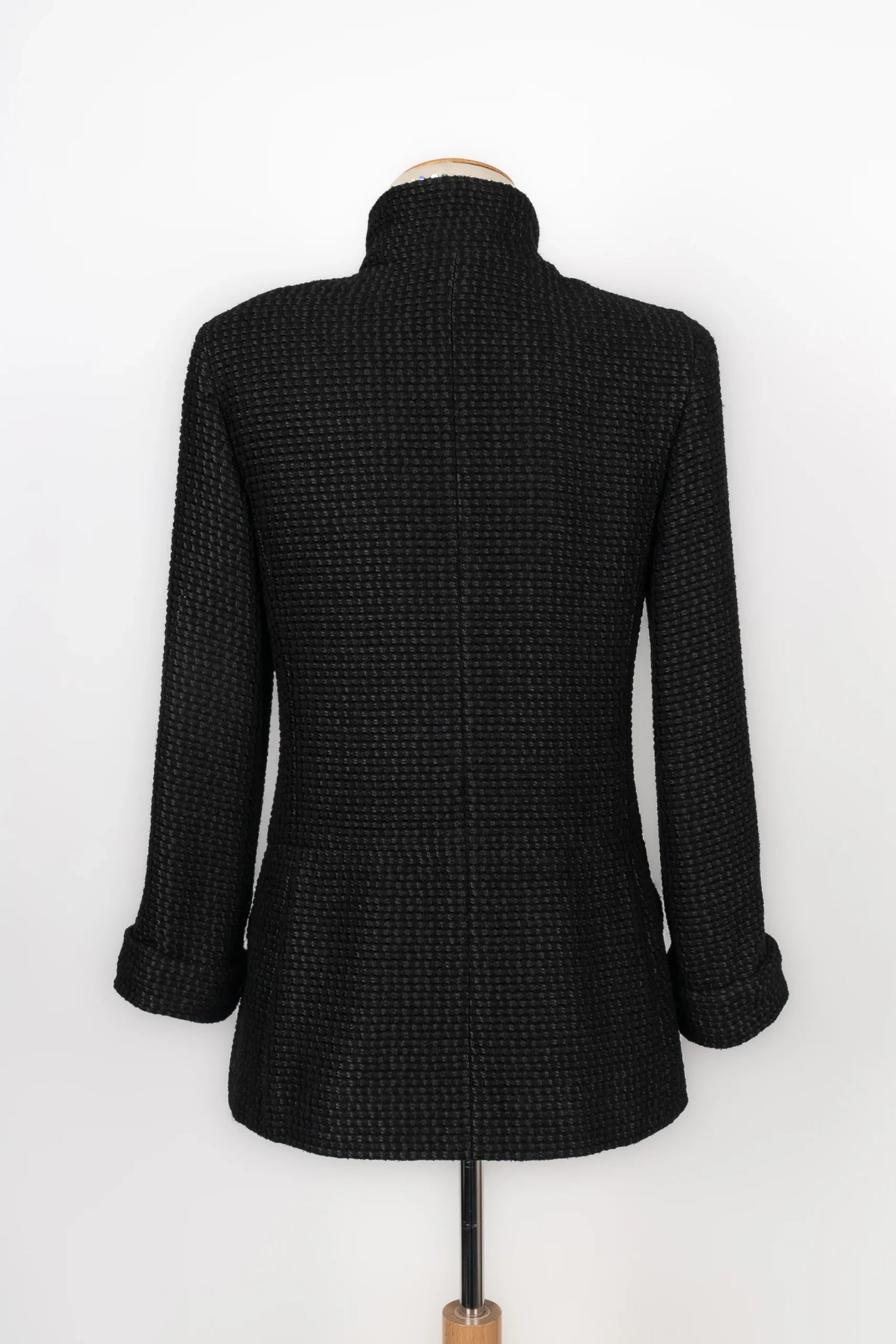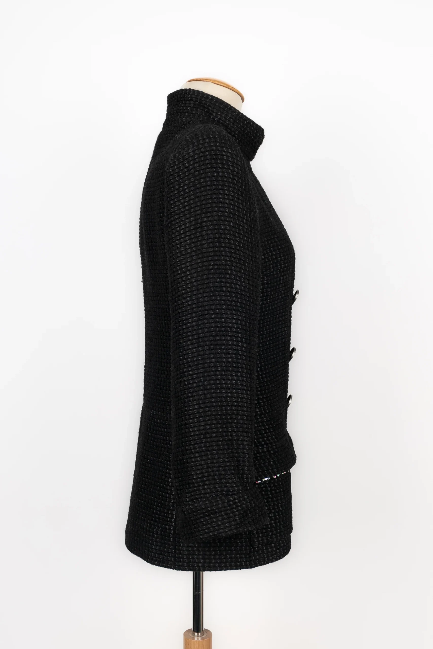 CHANEL -(Made in France) Veste en tweed noir, col en sequins brillants argentés. Taille indiquée 36FR.
