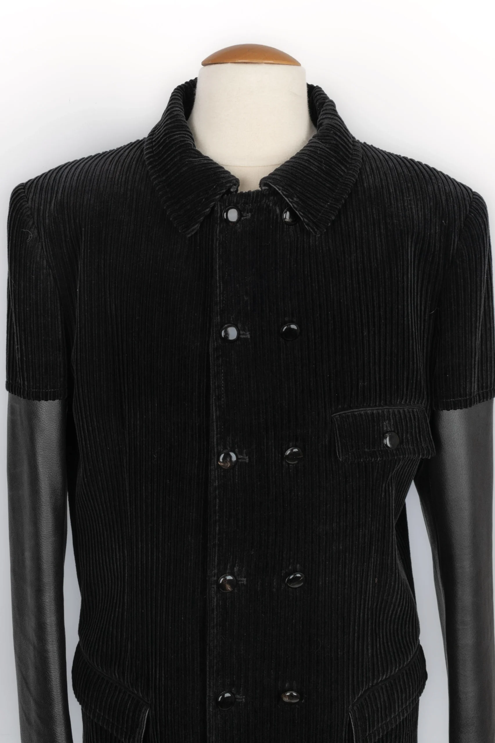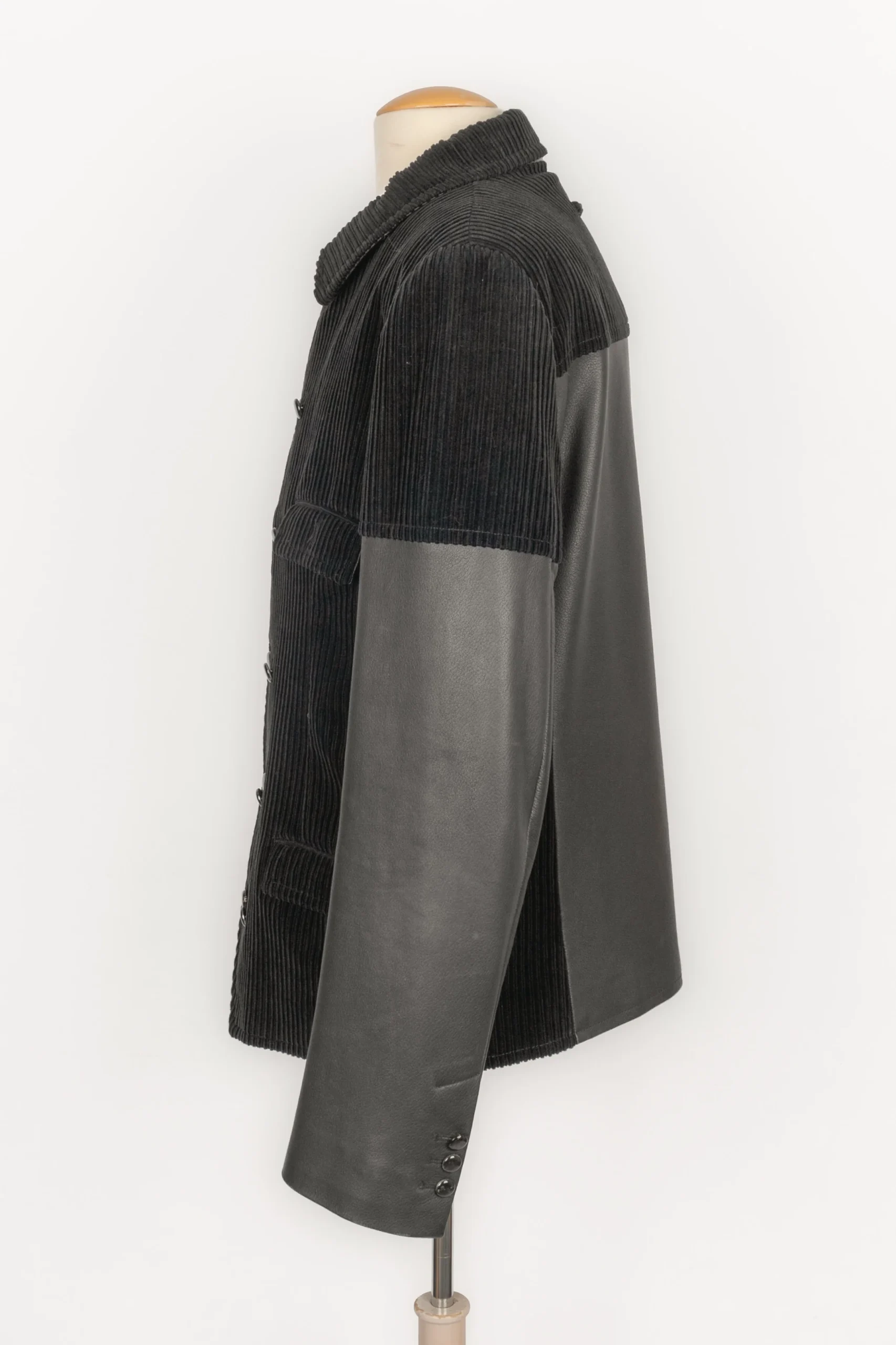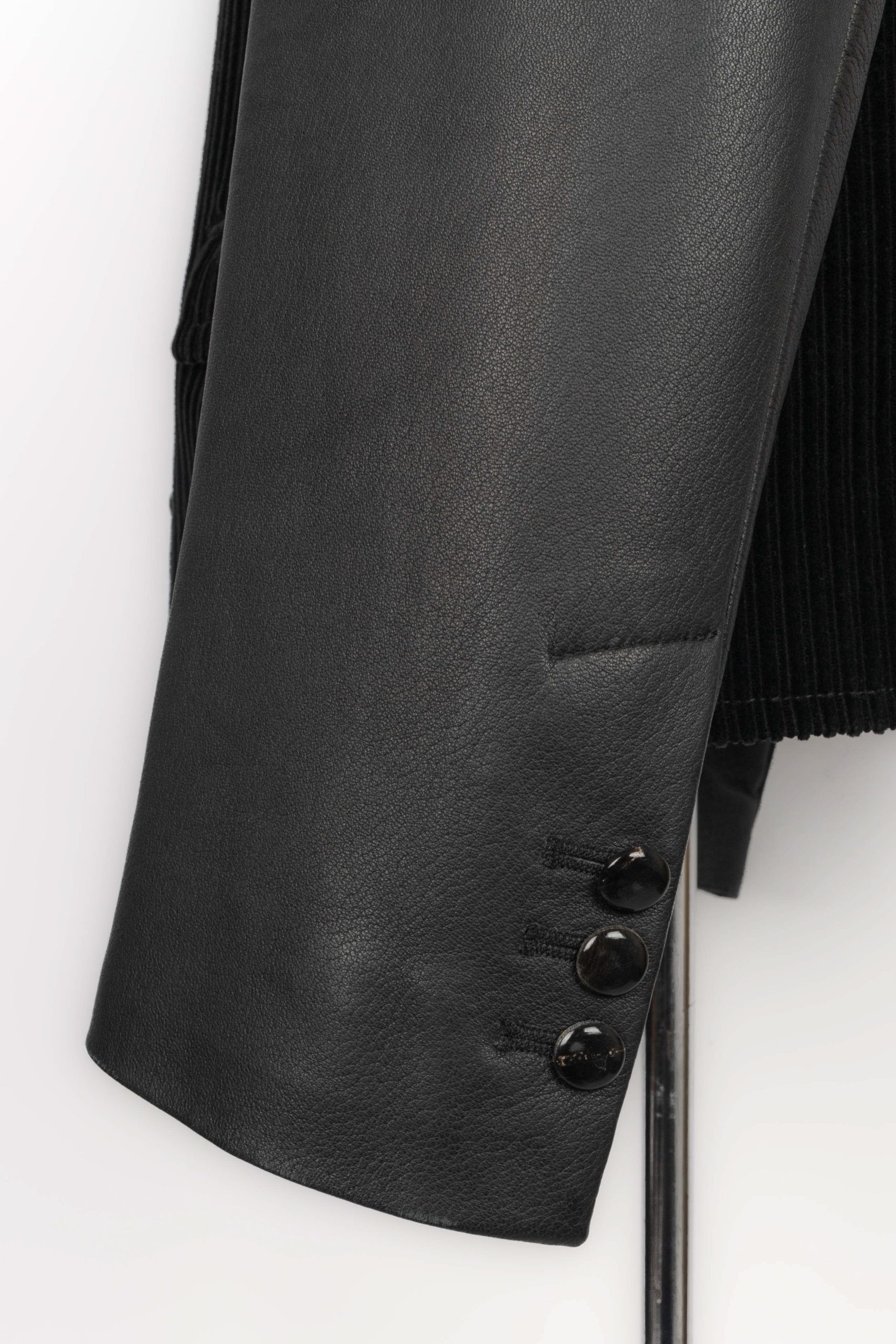 JEAN PAUL GAULTIER -Veste en velours côtelé noir. Les manches et le dos sont en cuir d’agneau noir. Taille indiquée 54FR. Collection Automne-Hiver 2012.
