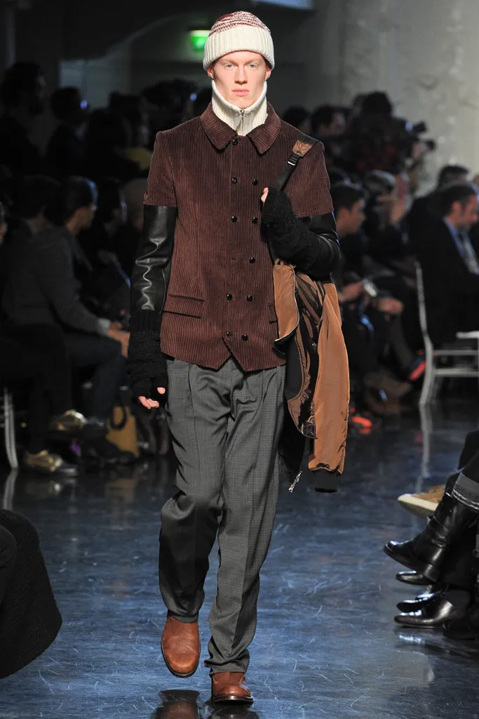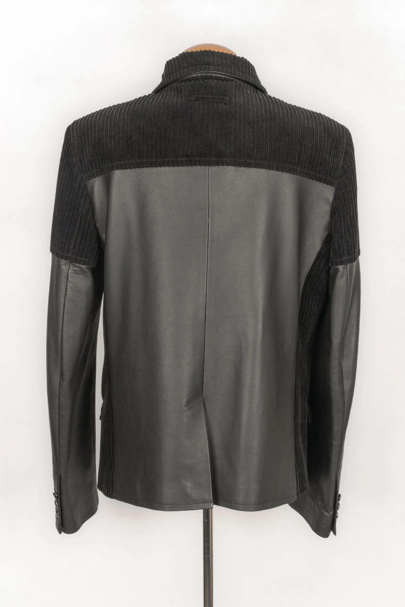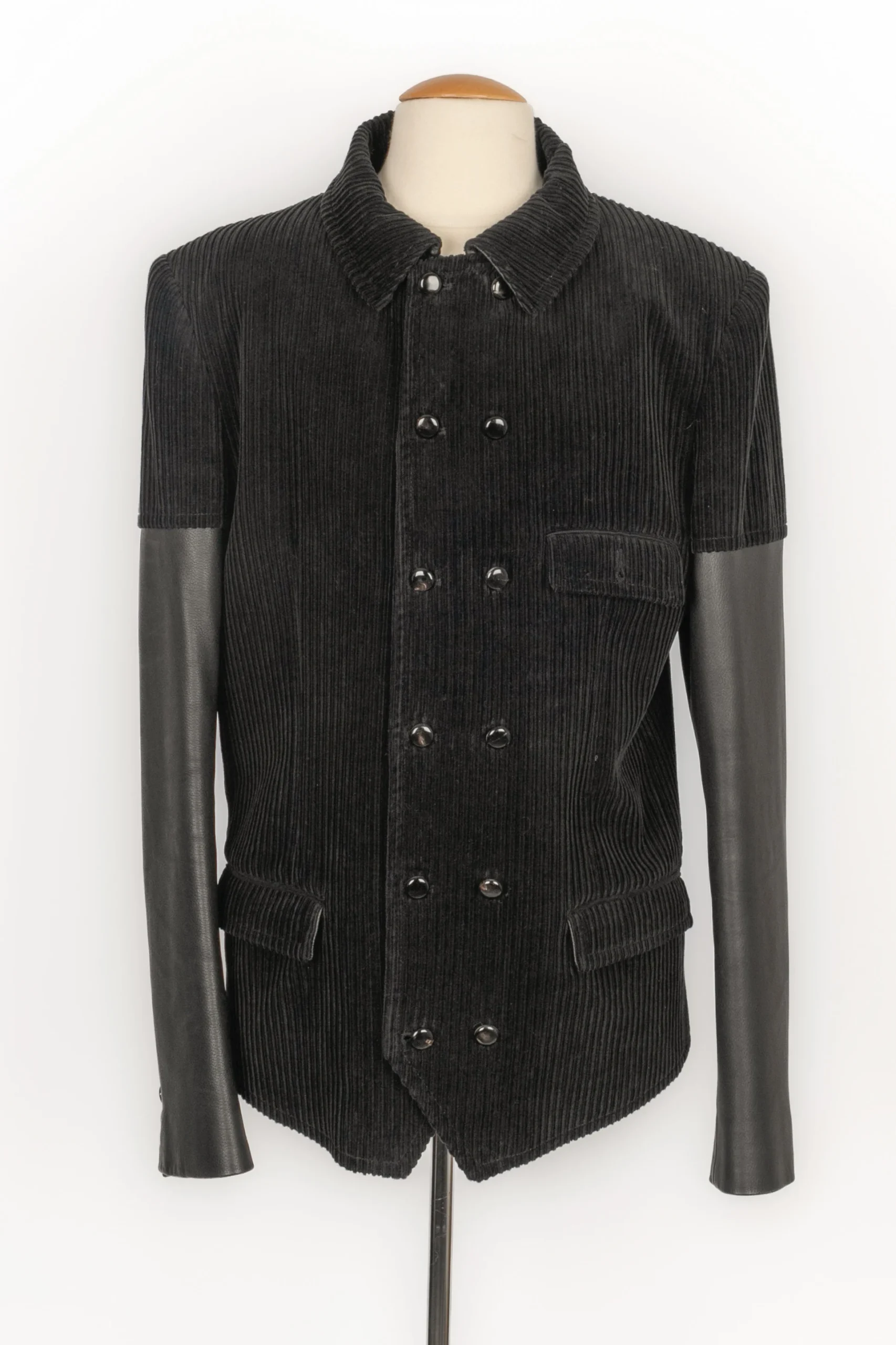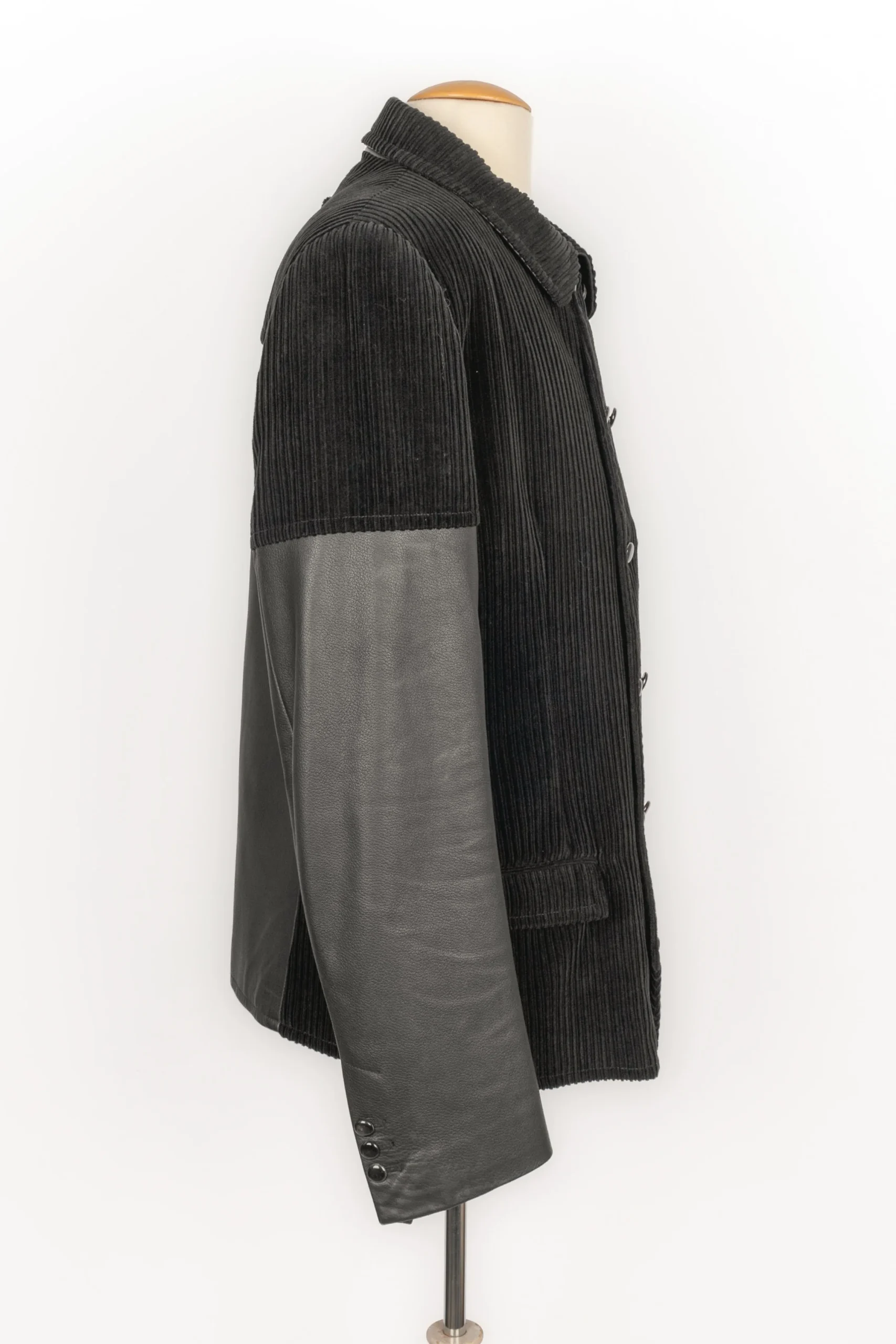 JEAN PAUL GAULTIER -Veste en velours côtelé noir. Les manches et le dos sont en cuir d’agneau noir. Taille indiquée 54FR. Collection Automne-Hiver 2012.