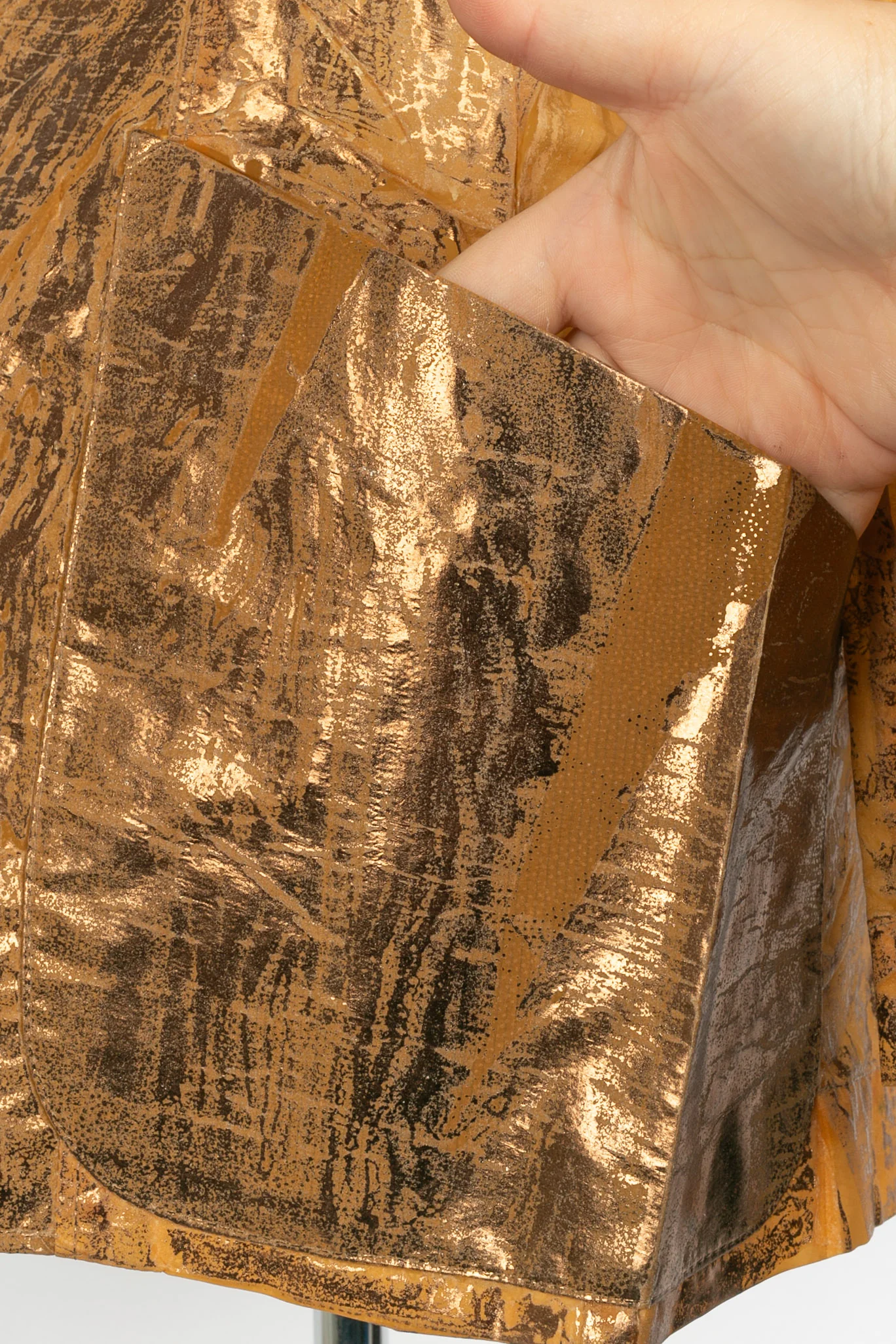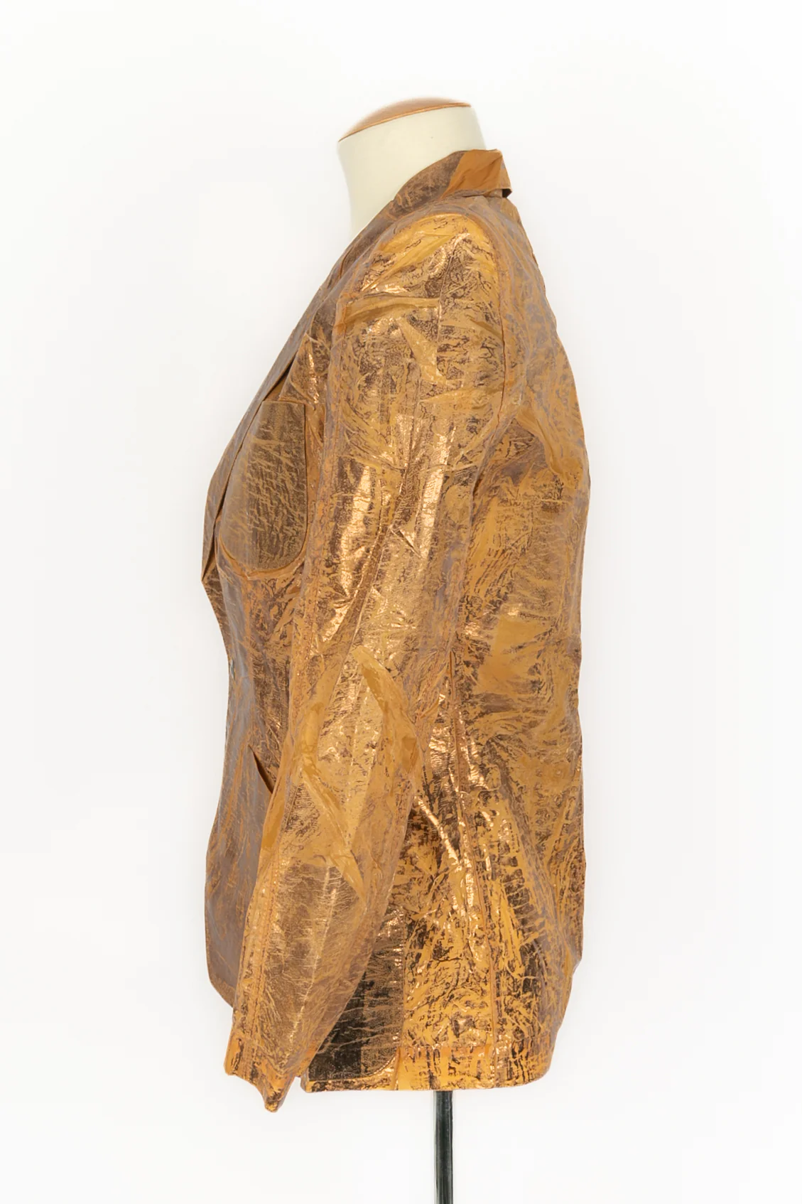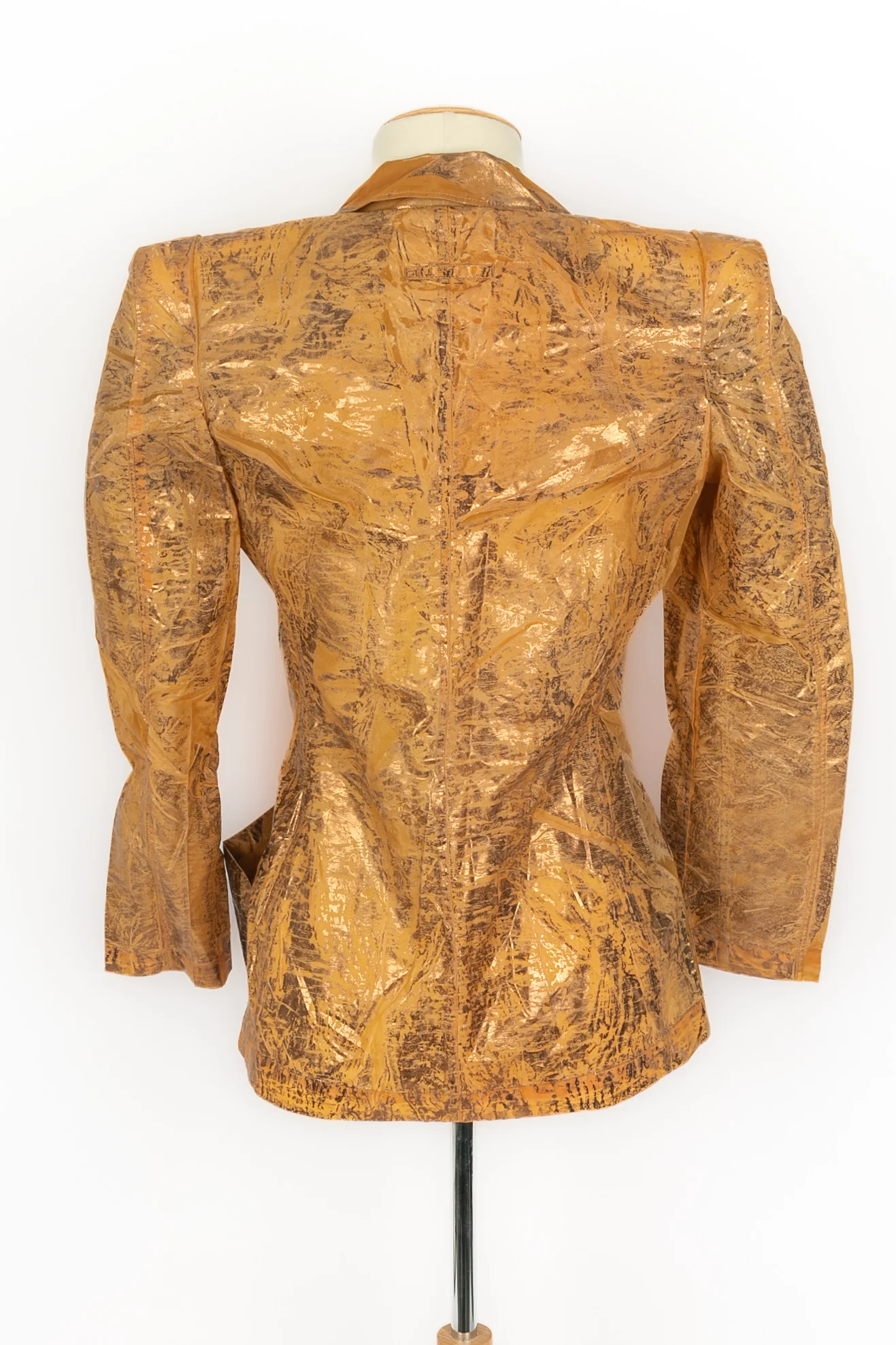 JEAN-PAUL GAULTIER -(Made in Italy) Veste dorée effets délavé et manches mi-longues. Taille indiquée 42IT, elle convient à un 38FR. Collection Prêt-à -Porter Printemps-Eté 1995 sous la direction artistique de Jean-Paul Gaultier.