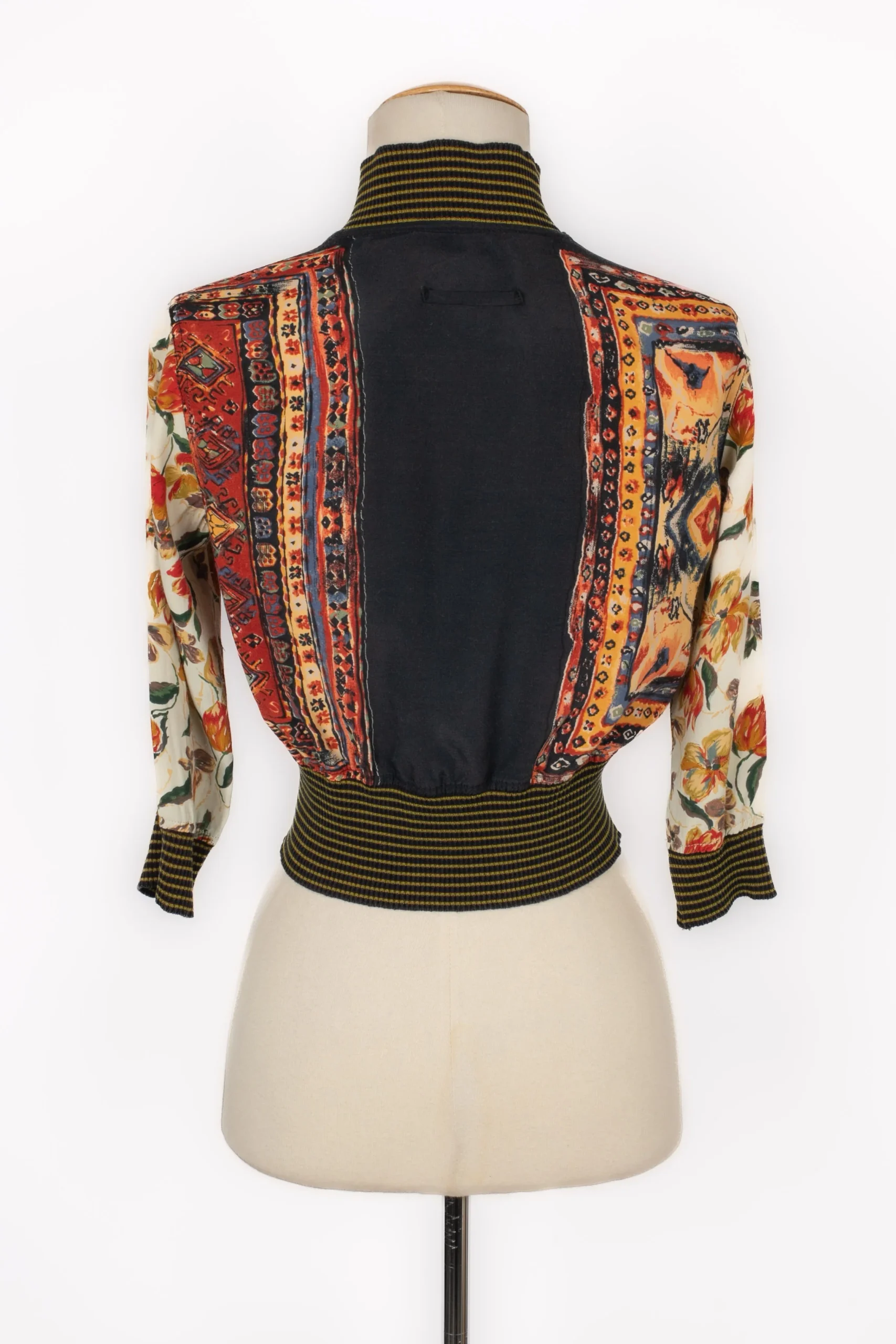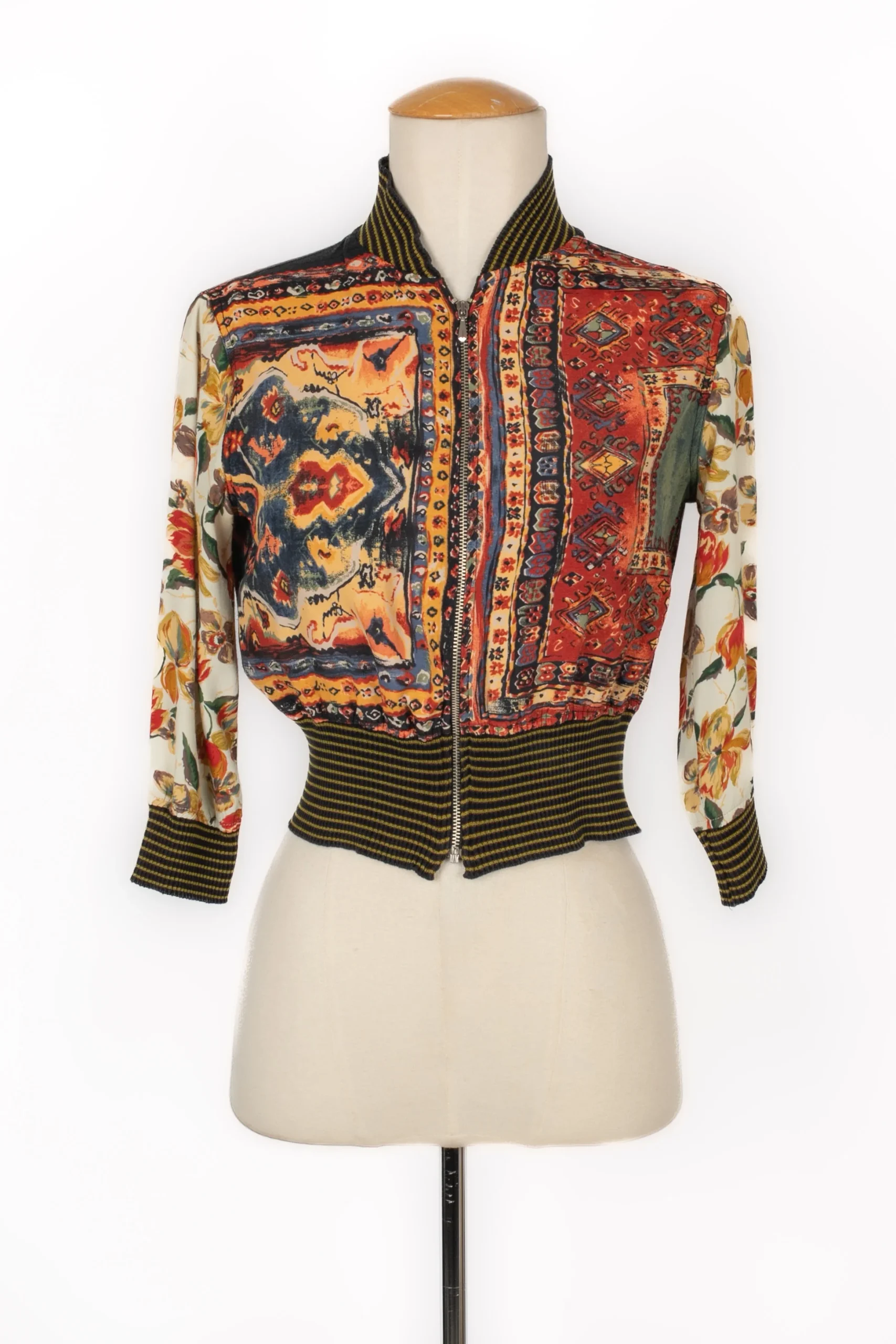 JEAN PAUL GAULTIER -(Made in Italy) Veste courte à motif multicolore. Taille indiquée 42IT, elle convient à un 36FR/38FR.